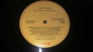 No Brasil o M.S.G. jamais conseguiu chegar perto da popularidade que possuía no continente americano e europeu. Mesmo o parentesco de Michael Schenker com seu irmão também famoso dos Scorpions foi mal explorado, pois a banda alemã sim gozava de enorme popularidade por aqui. “Perfect Timing” foi lançado em versão nacional pelo selo EMI com encarte interno boa distribuição. Tanto que minha cópia, comprada no dia 24 de maio de 1990, foi adquirida em uma loja de discos popular (não especializada), que não anotei como de costume em minhas anotações o nome, no centro de Sampa em uma promoção. Só sei que ficava na Rua Direita.