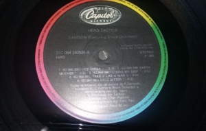 Em uma das minhas idas na Woodstock Discos certa vez assisti ao vídeo da apresentação do Samson em uma das edições do Reading Festival. Não tinha a jaula no palco daquela vez, mas as músicas eram sensacionais. E como os preços dos discos importados eram uma dificuldade na vida da maioria do bangers, ao ser lançado “Head Tactics” quebrou um ‘galhão’ para muita gente, principalmente para os fãs do Air Raid Siren. Só não vou dizer que fiquei completamente feliz, pois não incluíram justo a “Riding with the Angels”, um dos melhores rifes já gravados e minha música favorita da banda. Faz parte.