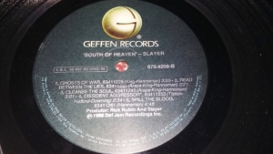No Brasil o LP “South of Heaven” foi lançado pela BMG-Ariola pouco depois do lançamento internacional, com encarte interno em papel cartão com as letras das músicas impressas. Minha cópia eu comprei em 4 de abril de 1989 na loja Fucker em Santo André-SP.