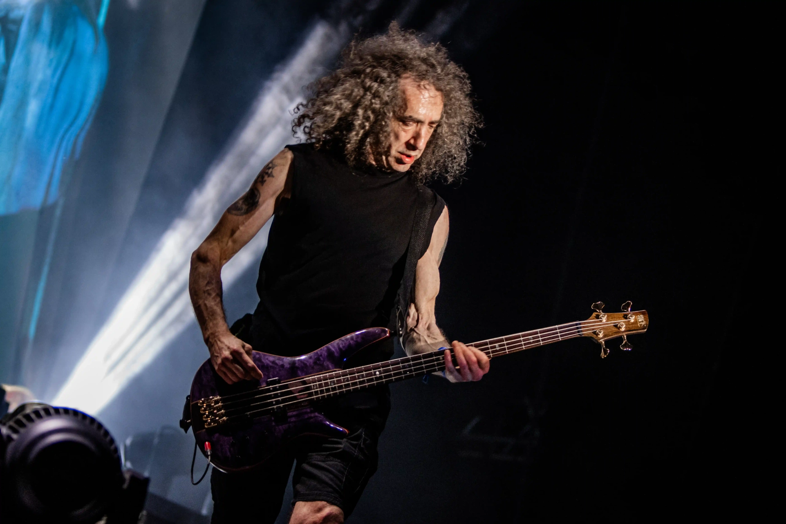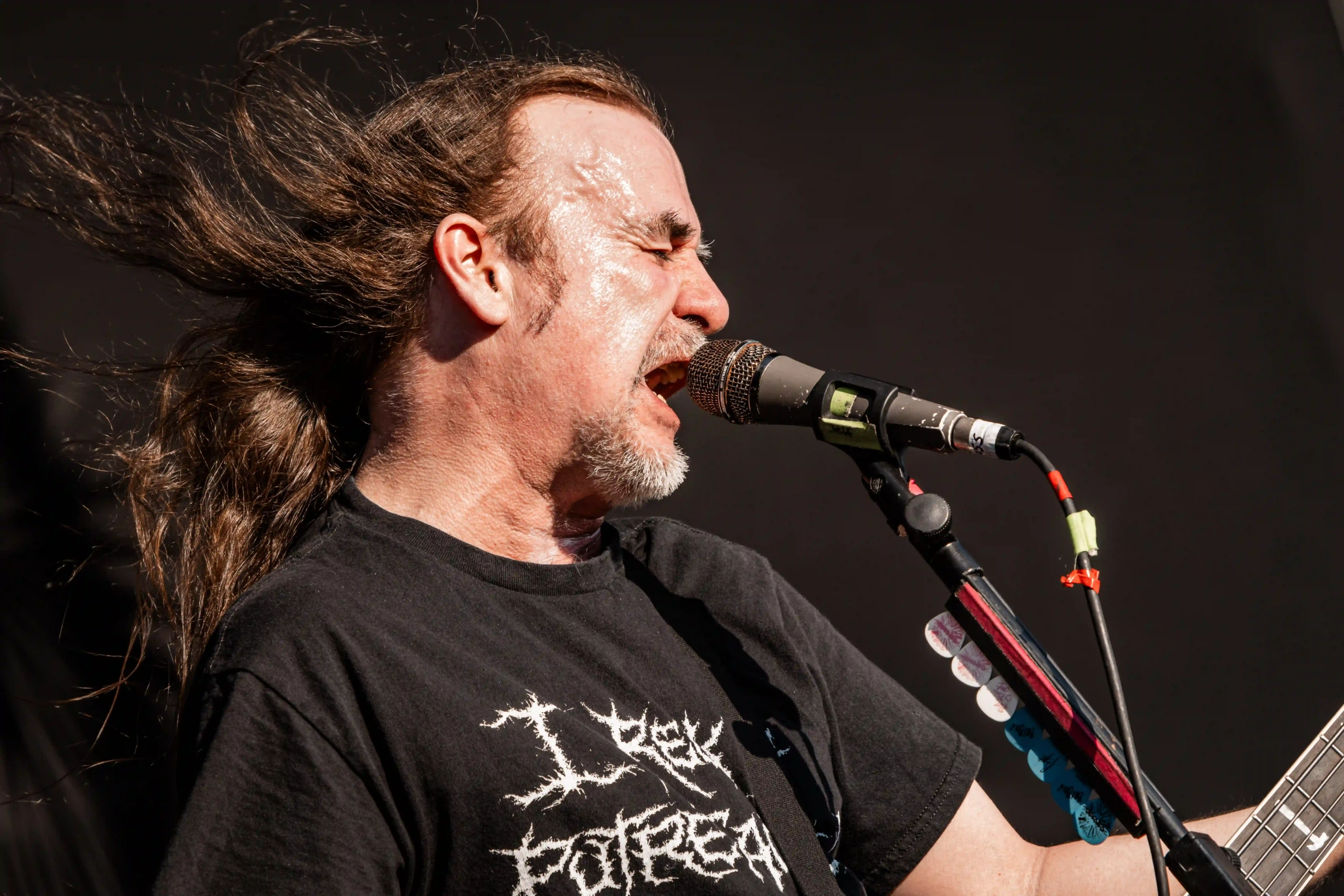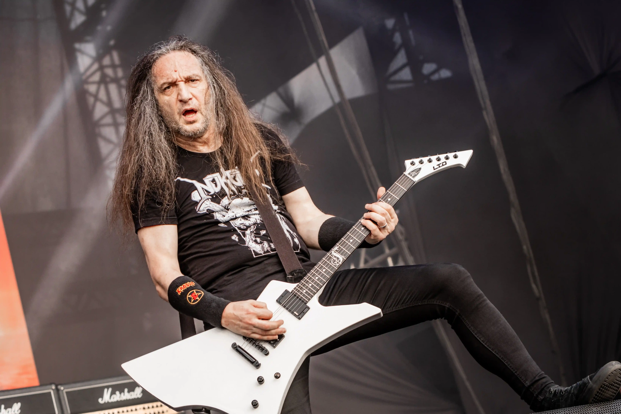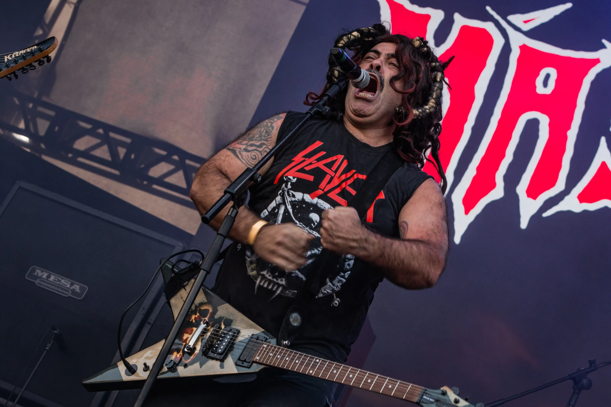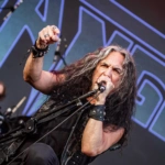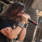 O Ice se iluminou novamente e os veteranos do thrash, Exodus sobem ao palco. E o primeiro mosh insano acontece. Show recheado de clássicos. Poucas bandas têm a coragem e privilégio de abrir o show com um dos seus maiores sucessos, Bonded By Blood. A roda aberta era quase da largura do palco. Um ritual, um transe. E eis que eu, um pontinho baixinho de preto decido entrar para “brincar de ciranda” também. Os caras emendaram Blood In Blood Out, aí tudo virou poeira. Pulos, gritos, letra da música aos urros e um murro no rim que pegou em mim e me fez sair para descansar um pouco. Saí para tomar uma água, para filmar mais de longe… o desfile foi longe e a galera não parou um segundo sequer.