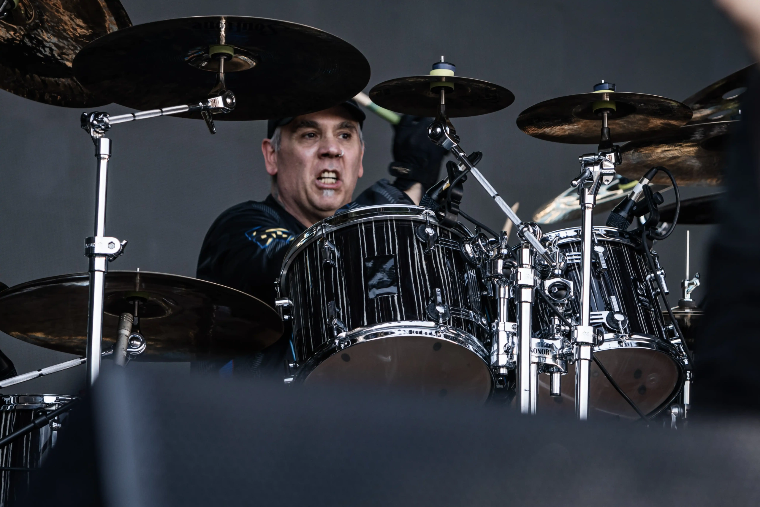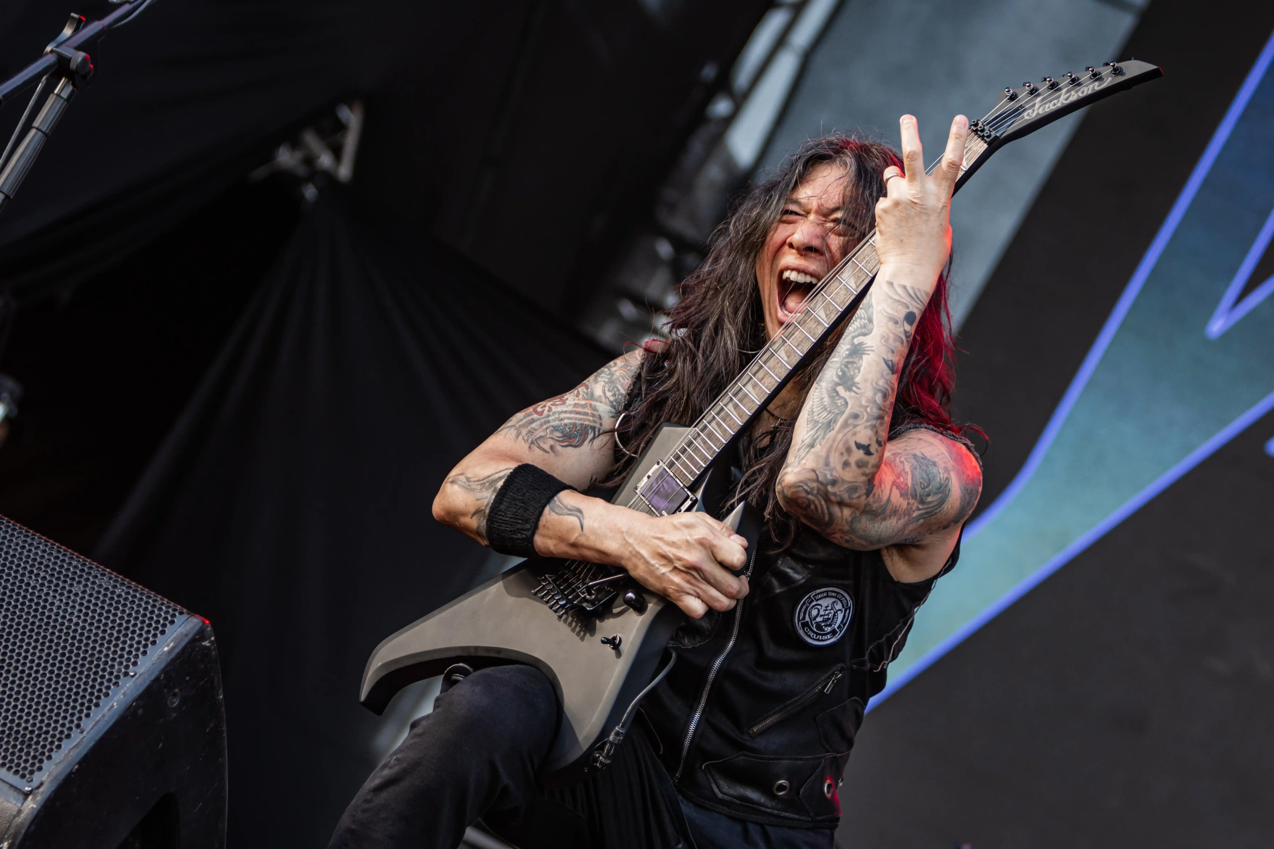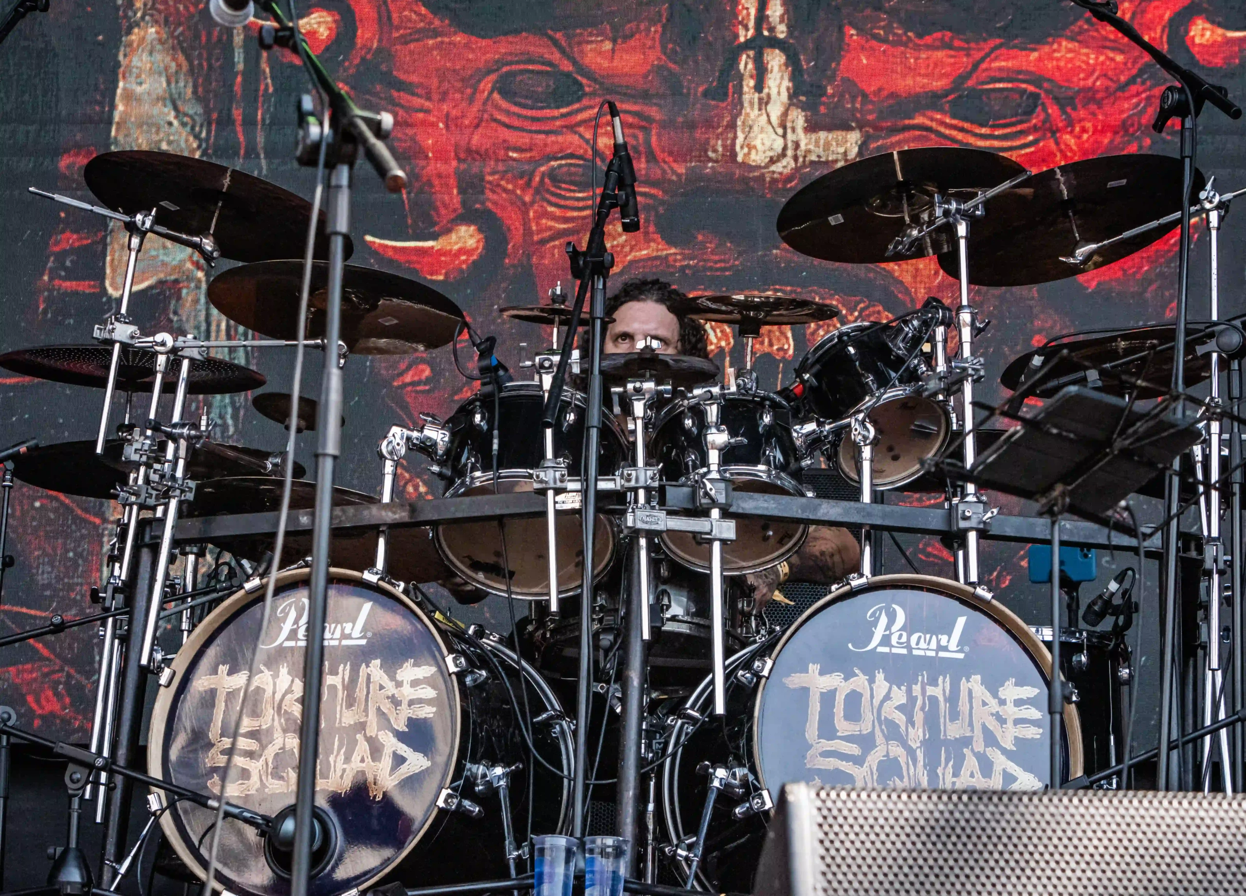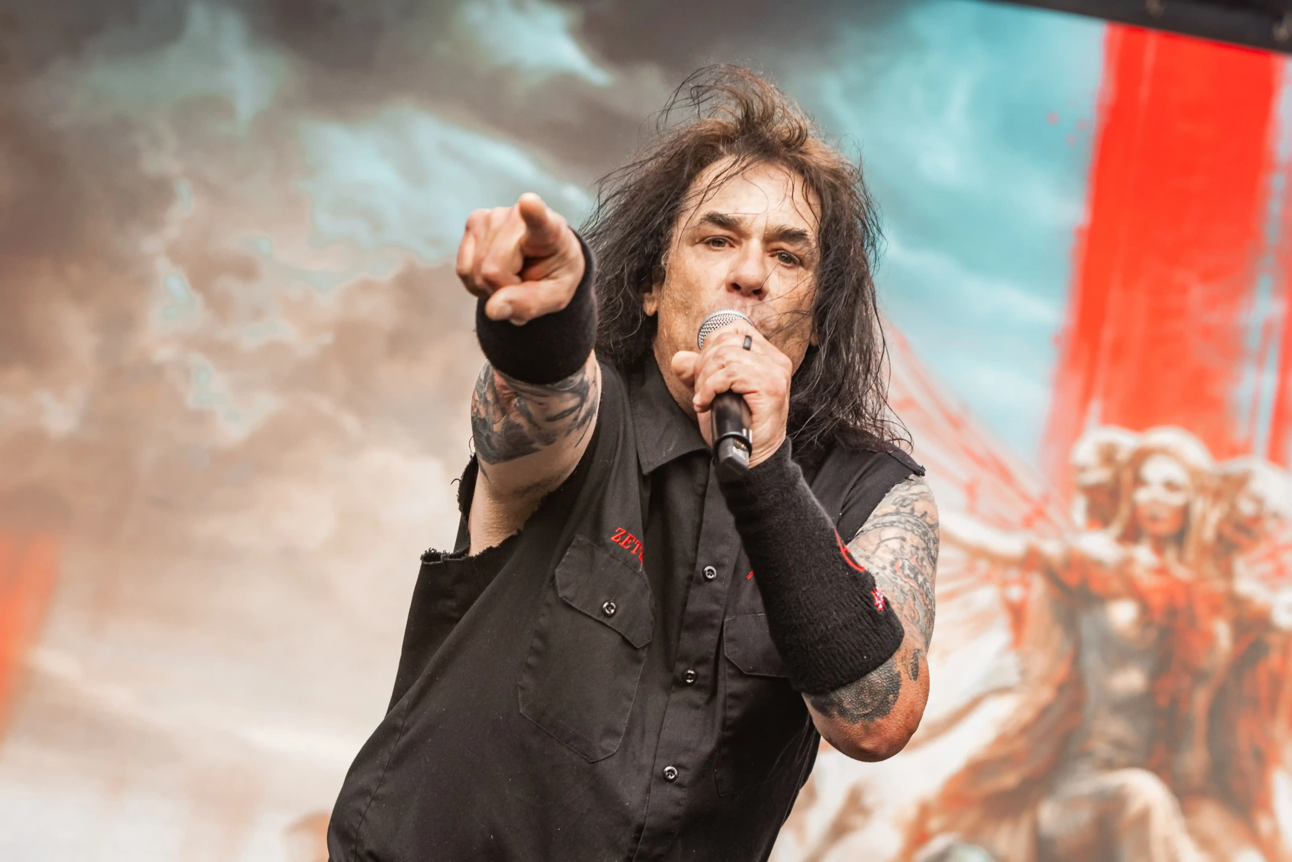 O Ice se iluminou novamente e os veteranos do thrash, Exodus sobem ao palco. E o primeiro mosh insano acontece. Show recheado de clássicos. Poucas bandas têm a coragem e privilégio de abrir o show com um dos seus maiores sucessos, Bonded By Blood. A roda aberta era quase da largura do palco. Um ritual, um transe. E eis que eu, um pontinho baixinho de preto decido entrar para “brincar de ciranda” também. Os caras emendaram Blood In Blood Out, aí tudo virou poeira. Pulos, gritos, letra da música aos urros e um murro no rim que pegou em mim e me fez sair para descansar um pouco. Saí para tomar uma água, para filmar mais de longe… o desfile foi longe e a galera não parou um segundo sequer.