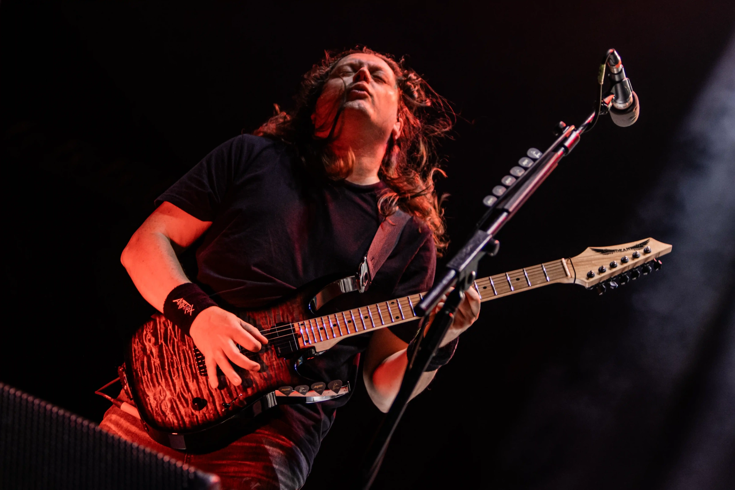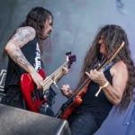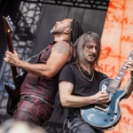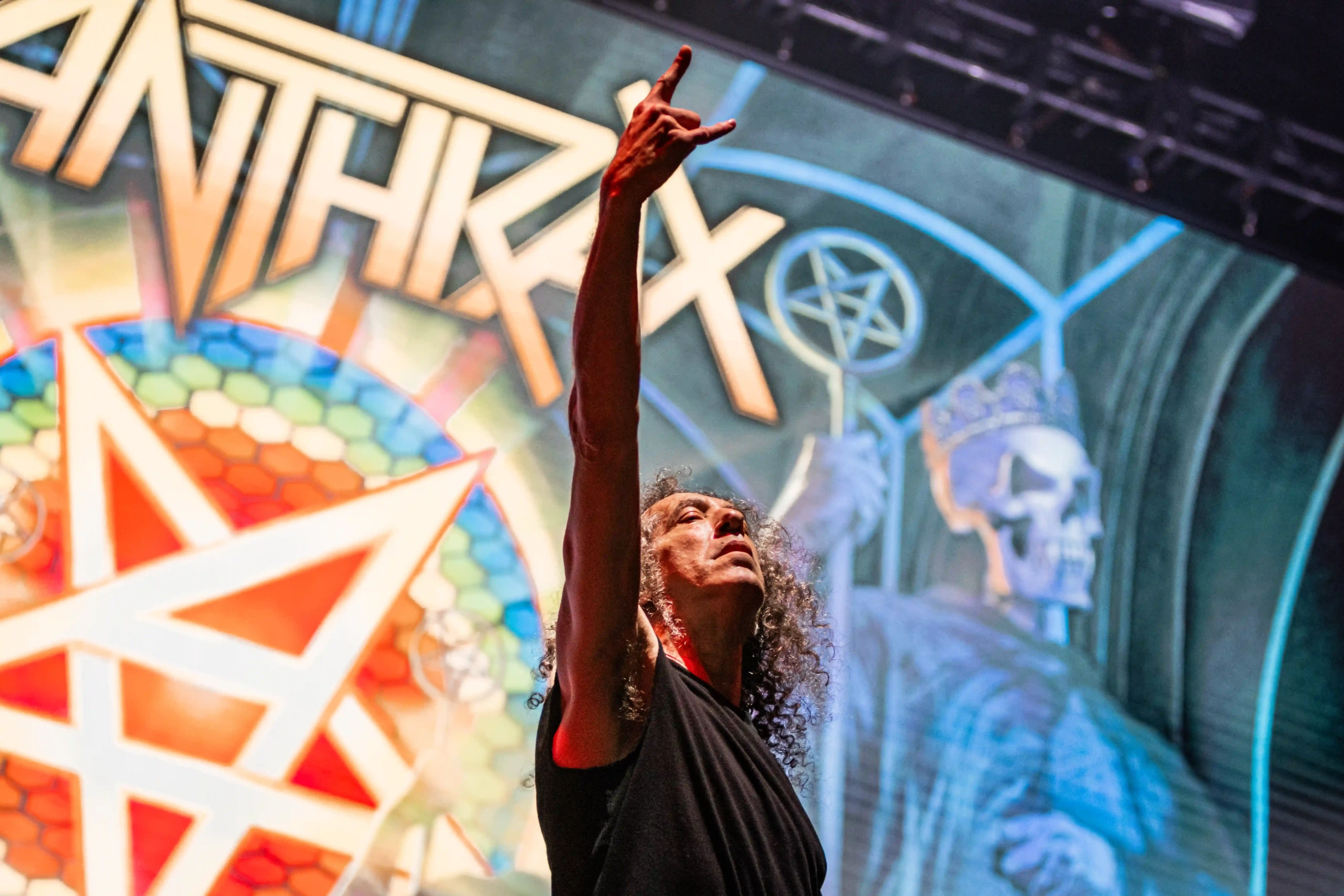 E com o cair da noite, às 18:30, no Ice Stage, as lendas representantes do Big 4, Anthrax entra no palco com um desfile de clássicos que poucas bandas podem fazer. Among the Living abriu a porta para emendar com Caught in a Mosh. Eu já estava gritando desde que vi Benante subir na bateria. A todo momento Scott chamava o público para o que eles chamam de “war dance”, que é a formação da roda, antes do mosh começar de fato. Belladona saúda todo o festival e emenda Madhouse, Metal Thrashing Mad, NFL e Keep it in the Family. Mais uma conversa contando como “eles estão felizes de voltar para o Brasil, num festival tão bacana, onde eles estão encontrando grandes amigos”. Antissocial, cover do Trust (banda de punk francesa que teve como bateristas Nicko McBrain e Clive Burr) começa a ensandecer ainda mais o público que estava quase derrubando as estruturas construídas. Um menino, que deveria ter 6 anos, no máximo, estava gritando a letra, enquanto duas pessoas o carregavam nos ombros. Paixão, senhoras e senhores. A paixão pela música, por uma banda, nunca será explicada. Viva isso, porque é uma dádiva. Scott Ian e Joe Belladona anunciam a entrada de um amigo para a próxima música: Andreas Kisser caminha para o centro do palco com I Am The Law. Explosão do público que aumenta a intensidade das “war dances”. In the End tem um anúncio de que será dedicada a Ronnie James Dio, Medusa passa emendada e Got The Time começa para levantar o que ainda existe de poeira naquele chão. Quando o refrão começa “time, got the time tick tick tickin’ in my head…” as pessoas simplesmente se esqueceram de quem elas eram. A “war dance” acabou e o mosh pit mais insano da noite aconteceu: era grande, brutal, rápido. Não dava para entender de onde partia tudo aquilo. AIR passa na mesma intensidade até começar um de seus maiores hits: Indians. Os fãs estavam em êxtase e tristes ao mesmo tempo, pois sabiam que aquela celebração toda estava chegando ao fim. “Cry for the Indians”, todos gritavam a plenos pulmões. Aquele menino que era carregado por duas pessoas, agora estava sendo lançado para o ar por um grupo. Charlie Benante para a música no meio e Scott vem ao centro. Ele pede “para que as pessoas parem de filmar um pouco, porque aquilo é um show de thrash metal, e as rodas deveriam acontecer de verdade, os ‘bate-cabeças’ deveriam acontecer de verdade, na grade”, entre outras coisas mais explícitas. E incrivelmente muitos celulares abaixaram, e uma roda ainda maior que a anterior se abriu, com uma “war dance” mais cadenciada e forte e, sem entender até agora como surgiu um sinalizador no meio dessa roda. O efeito foi lindo, mas reforço que eu não entendo como um sinalizador entrou num festival. Ao som de Long Live Rock n Roll, a banda se despediu.