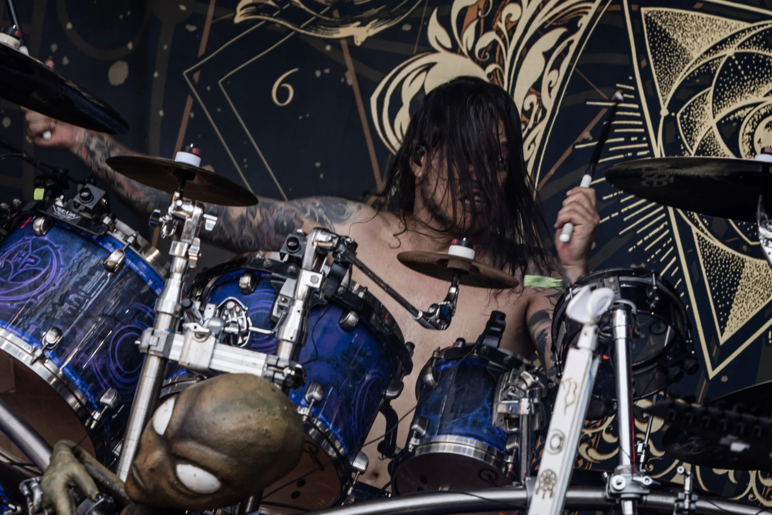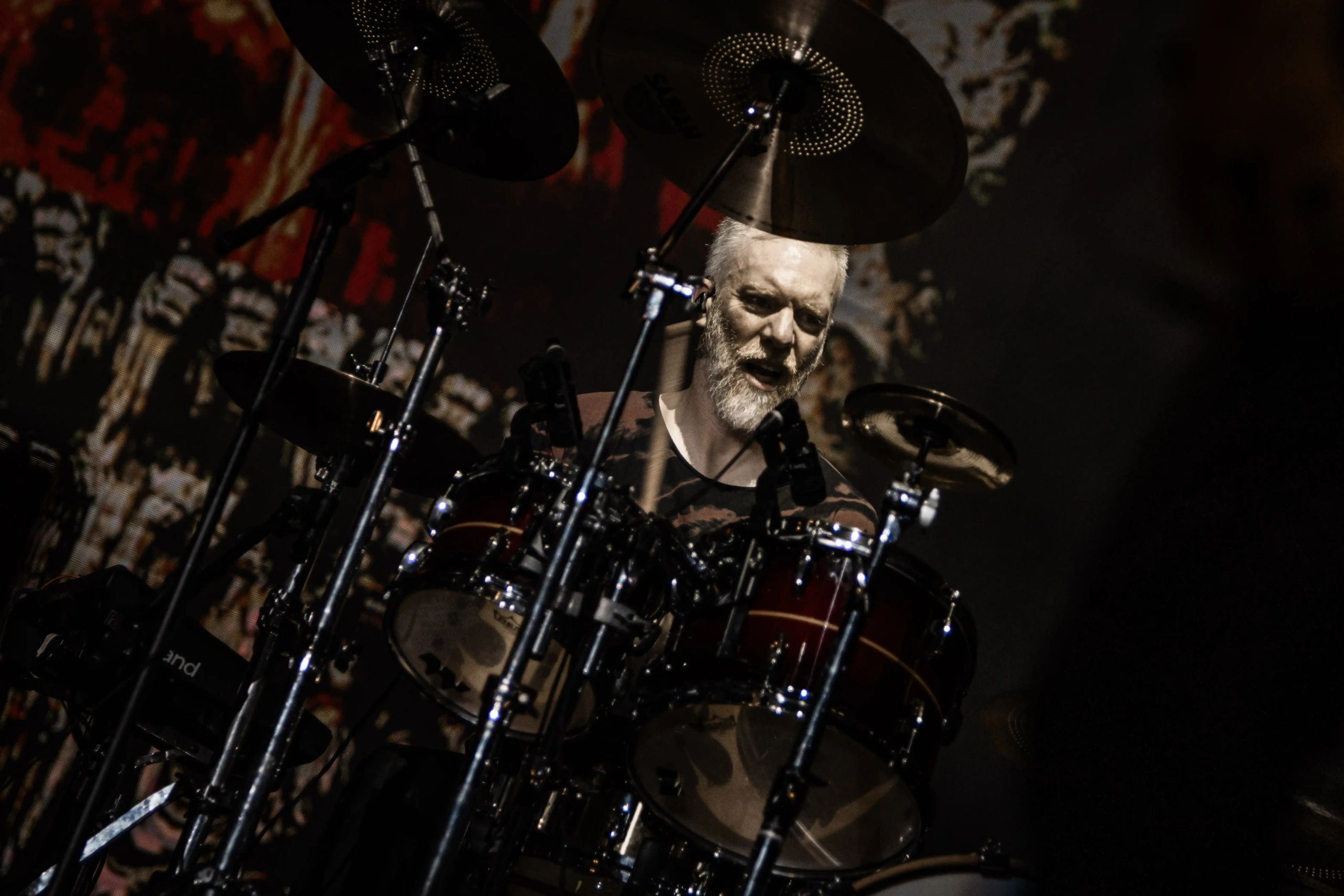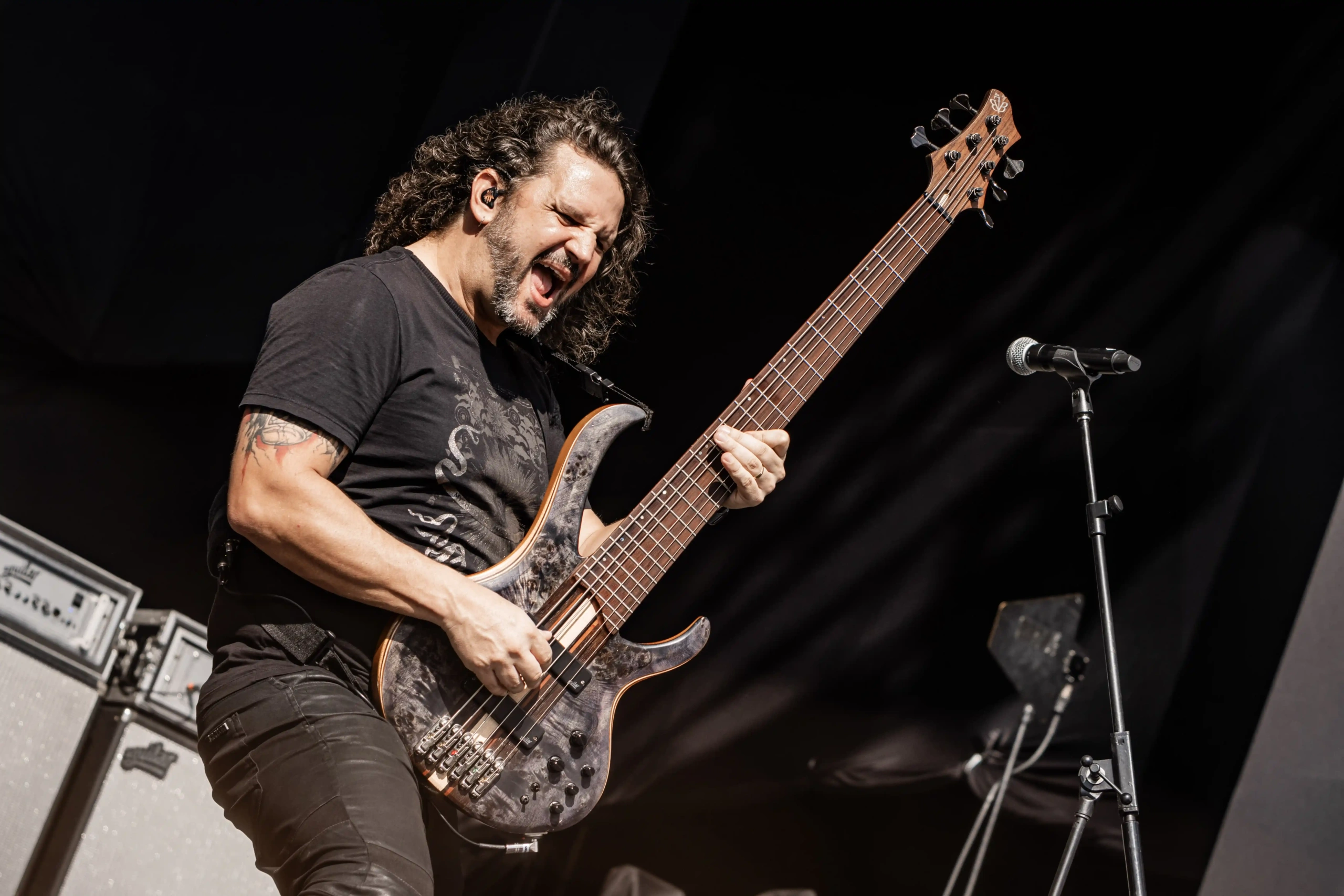 Aliás, quem sofreu com o calor foi o pessoal do Carcass, que subiu no palco Ice ao final do Avatar. Os ingleses pararam o show algumas vezes para colocar gelo na cabeça e, constantemente pediam para o público se hidratar, porque o calor estava cruel demais e nada saudável. Eu mesma estava com uma camiseta mais fechada e branca de tanto protetor solar espalhado, porque o bronzeado do dia anterior, já estava bem forte. Era preciso tomar muito cuidado! O Carcass abriu com o clássico Burried Dreams, que já fez um mosh aparecer, mas em Black Star, a maior roda que eu tinha visto até então, naquele dia foi formada. E como eu estava na missão de caçar e entrar no maior número de moshes possível, fui. Eu e a minha capacidade de tomar decisões controversas. Não sofri nenhum hematoma, nada além dos encontrões habituais…, mas a roda era gigante, com algumas mulheres pulando e cantando as músicas, alguns homens ao centro apenas com os braços abertos empurrando o próximo. Se tivéssemos com um drone, com certeza veríamos um balé.