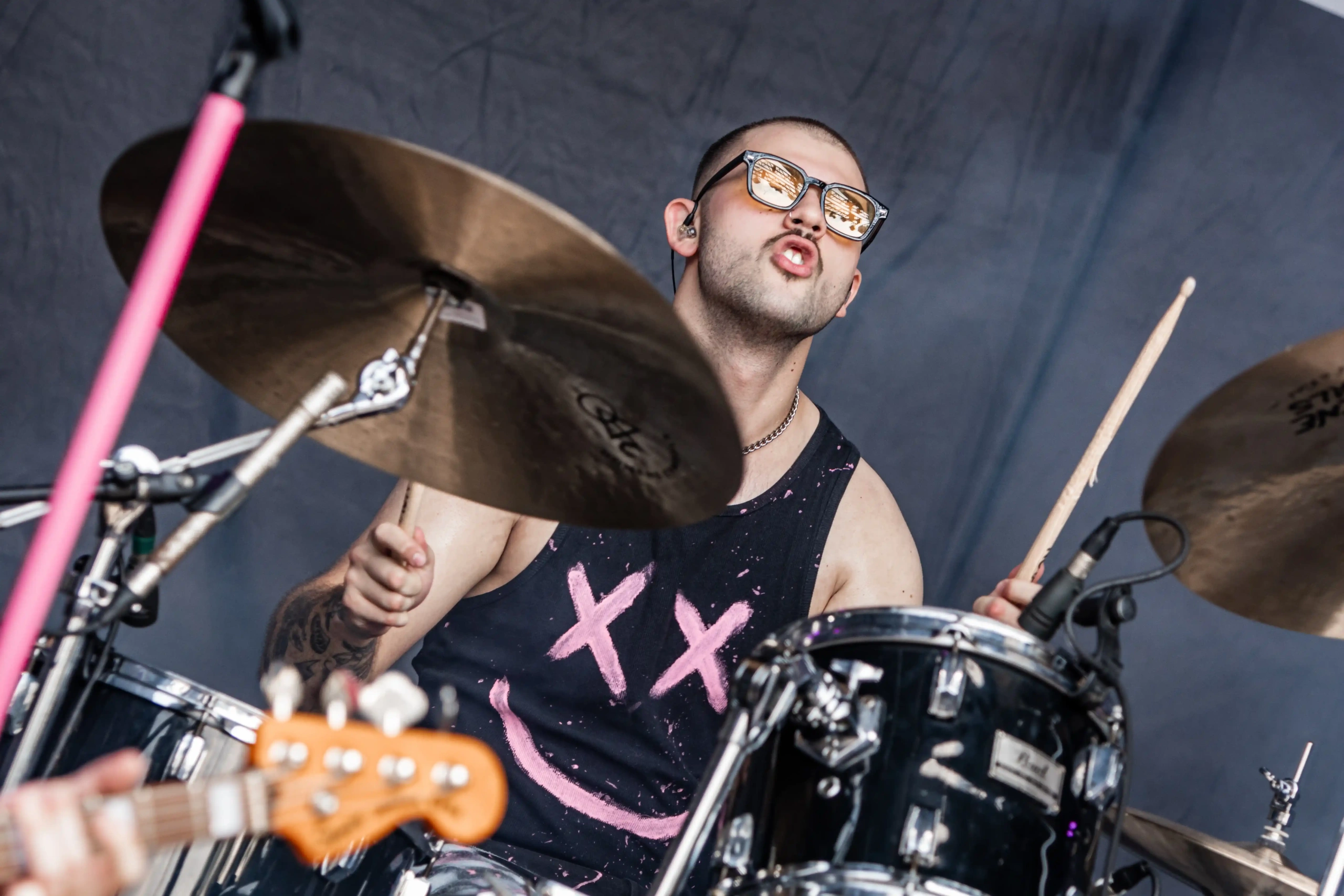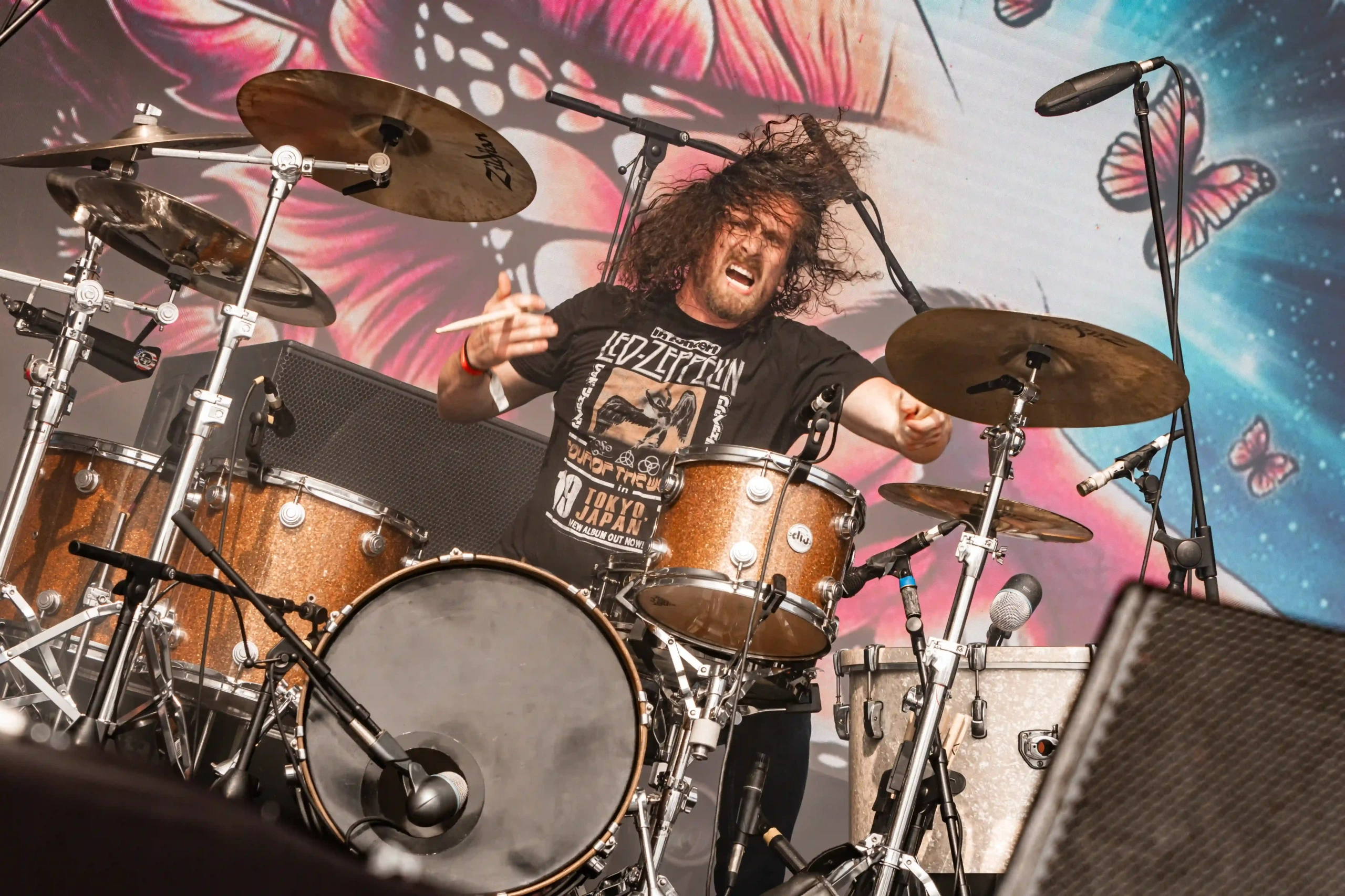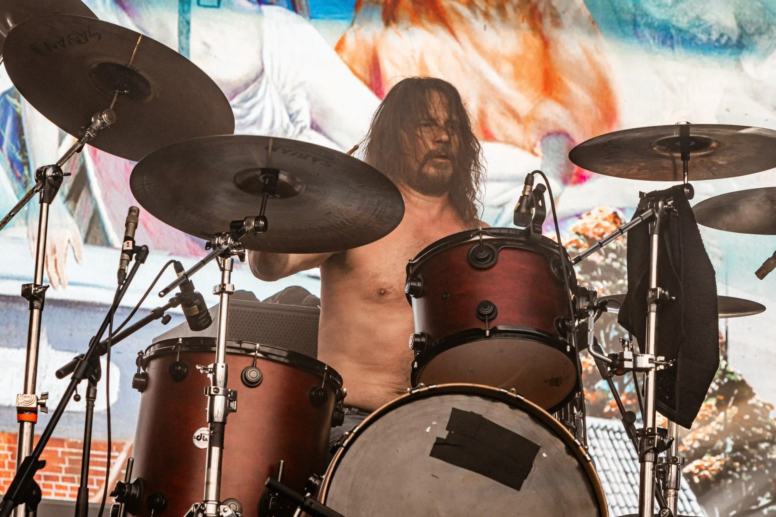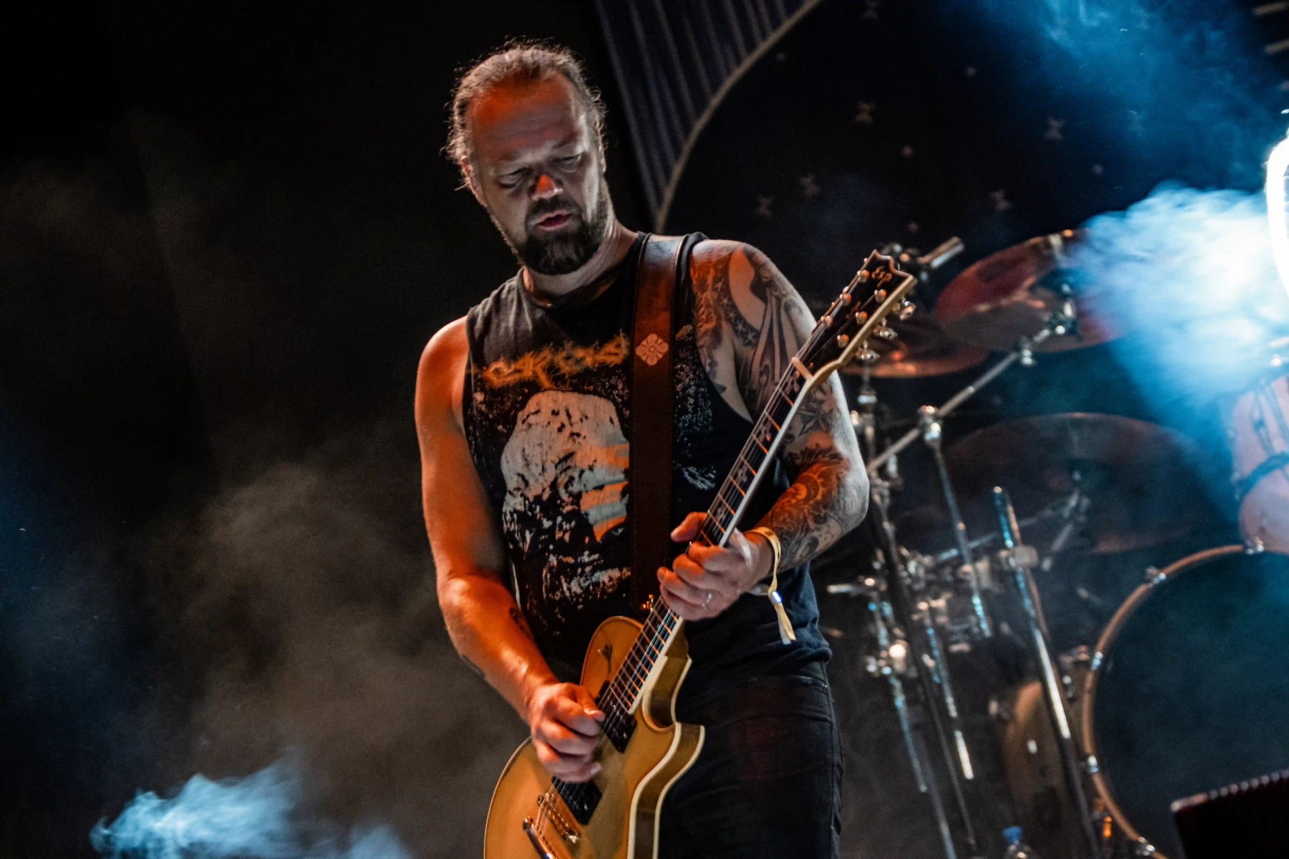 Aliás, quem sofreu com o calor foi o pessoal do Carcass, que subiu no palco Ice ao final do Avatar. Os ingleses pararam o show algumas vezes para colocar gelo na cabeça e, constantemente pediam para o público se hidratar, porque o calor estava cruel demais e nada saudável. Eu mesma estava com uma camiseta mais fechada e branca de tanto protetor solar espalhado, porque o bronzeado do dia anterior, já estava bem forte. Era preciso tomar muito cuidado! O Carcass abriu com o clássico Burried Dreams, que já fez um mosh aparecer, mas em Black Star, a maior roda que eu tinha visto até então, naquele dia foi formada. E como eu estava na missão de caçar e entrar no maior número de moshes possível, fui. Eu e a minha capacidade de tomar decisões controversas. Não sofri nenhum hematoma, nada além dos encontrões habituais…, mas a roda era gigante, com algumas mulheres pulando e cantando as músicas, alguns homens ao centro apenas com os braços abertos empurrando o próximo. Se tivéssemos com um drone, com certeza veríamos um balé.