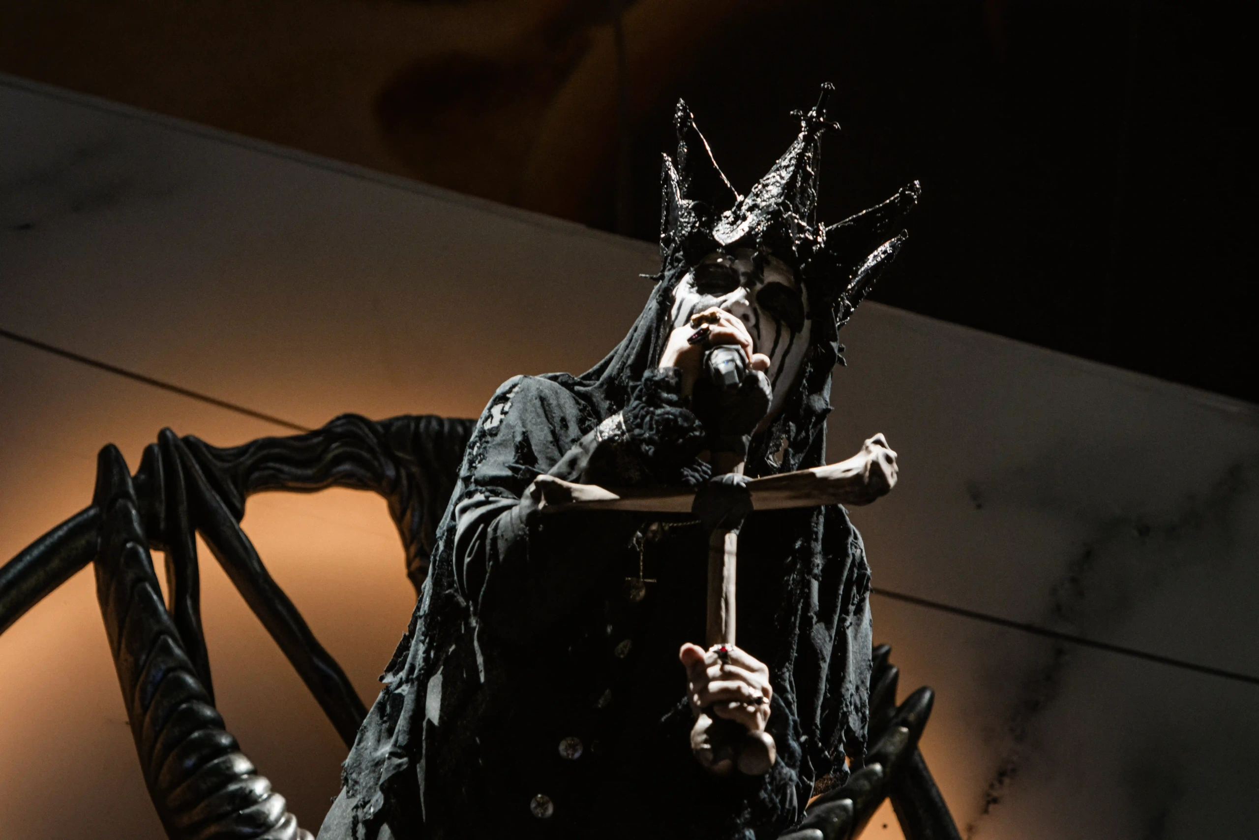 Antes do Ice Stage apagar, a bandeira gigantesca que cobria o Hot Stage, com o nome Mercyful Fate já estava pendurada. O público gritava, urrava. Afinal, foram 28 anos sem essa banda dar as caras por aqui. Ansiedade, uma vontade de respirar mais forte, um grito entalado na garganta… era o que descrevia a vontade de ver King Diamond novamente por aqui com a banda. E pontualmente às 20:05 foi o que aconteceu. Antes da cortina cair, os sinos macabros davam o tom da missa negra do que é o personagem mais bizarro do Rei desde o início da banda: the num.