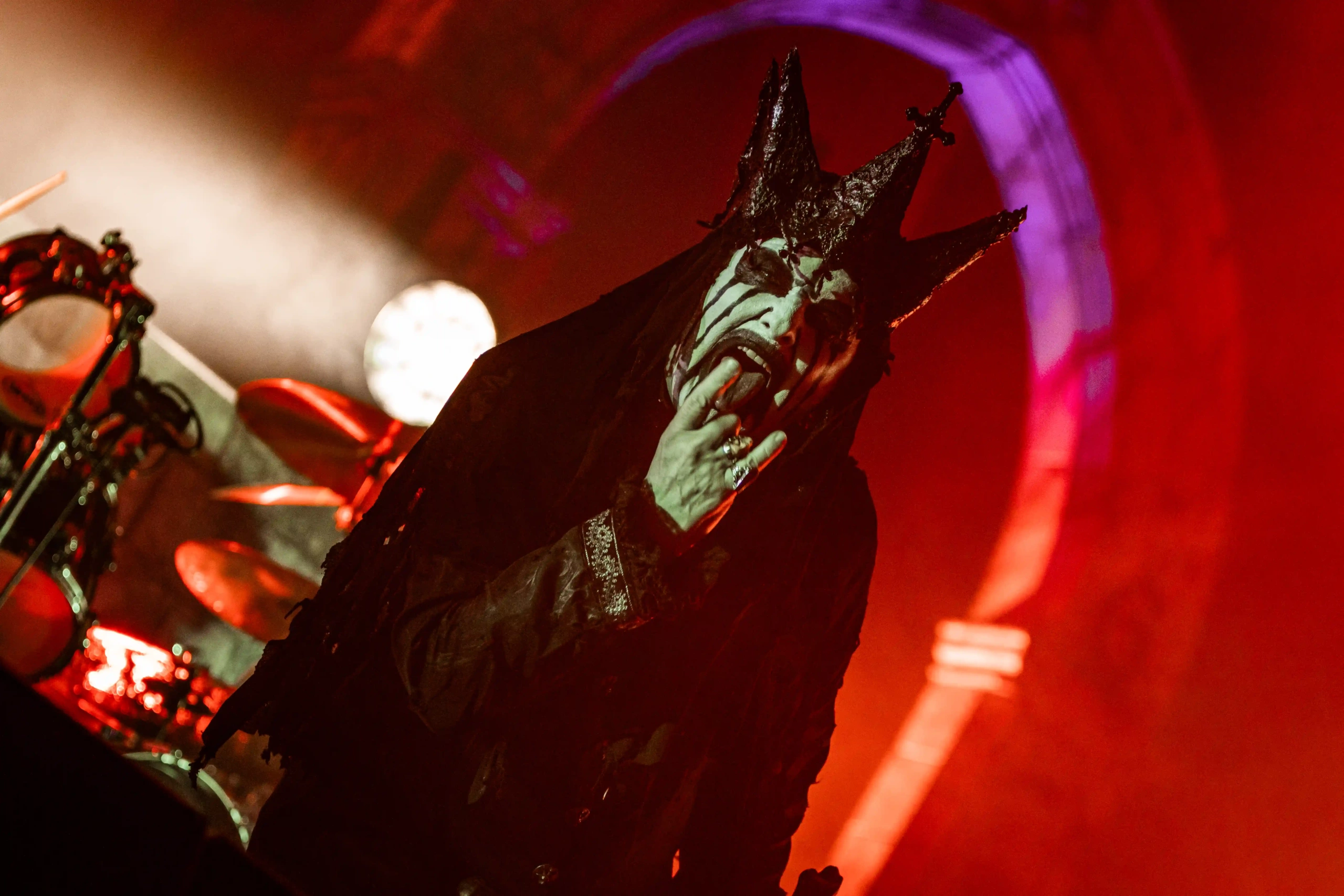 Cortinas no chão, primeiros acordes de The Oath – coração disparado – King Diamond entra para o que foi uma das noites mais históricas do ano. E ainda estávamos em abril! Seu tom único e interpretação peculiar, fez seus súditos segurem cada passo d’O Rei pelo palco. Era hipnótico. E os clássicos não paravam A Corpse Without Soul, The Jackal of Salzburg, A Curse of the Pharaohs… todas elas com uma pequena introdução para apresentação da música. Ele fez questão de apresentar cada uma, já que muitos de seus seguidores que estavam ali, sedentos por sua presença, não eram nem nascidos na época de sua última passagem com o Mercyful Fate por aqui, meados de 1996, no Monsters of Rock. A Dangerous Meeting chegou como um aviso, emendando com Doomed By The Living Dead. Uma pausa. As luzes diminuíram e o dedilhado começou, era Melissa chegando para emocionar a todos. Como foi incrível assistir a essa música ao vivo. Como foi incrível viver para presenciar esse momento tão especial. Black Funeral entrou para melhorar os ânimos e Evil começa para mostrar o que uma lenda é capaz de fazer. Em todos os shows dos dois palcos principais, enquanto um estava desativado, os telões eram emprestados ao show vizinho, ou seja, os shows sediados no Hot Stage eram transmitidos também pelos telões do Ice Stage, assim o show tinha um alcance maior, e vice-versa. Mercyful Fate e seu Rei estavam no Hot, mas uma roda ritualística e gigantesca foi aberta em frente ao palco Ice. Evil ensandeceu o público que há anos esperava por esse momento. A missa estava chegando ao seu fim quando a bateria deu sua primeira chamada para Come to the Sabbath. A massa pulava, dando a impressão de tremer o chão. E foi isso que aconteceu: o chão tremeu com o poder de King Diamond e o Mercyful Fate. O encerramento se deu com Satan’s Fall. Nada mais apoteótico e memorável que isso.