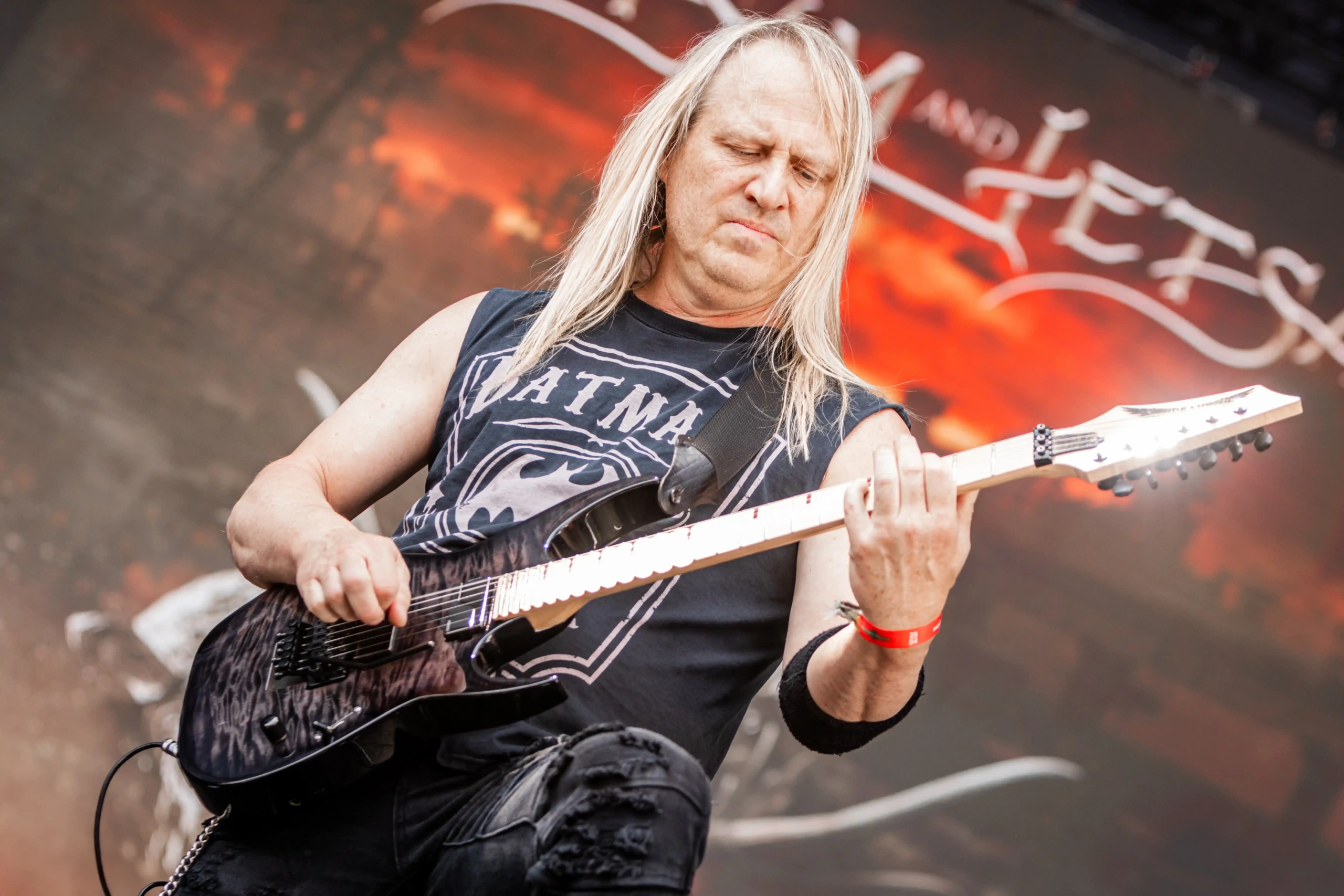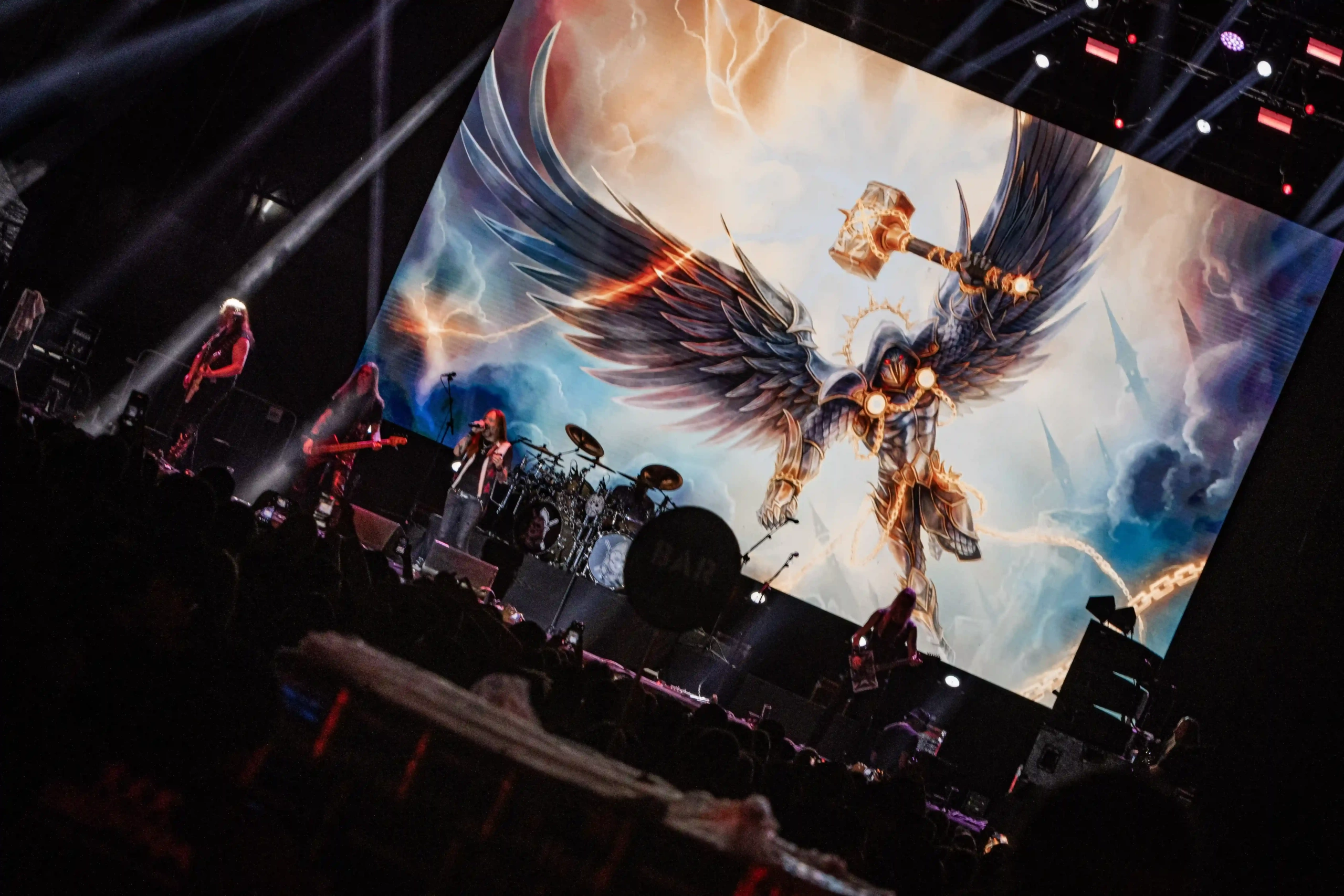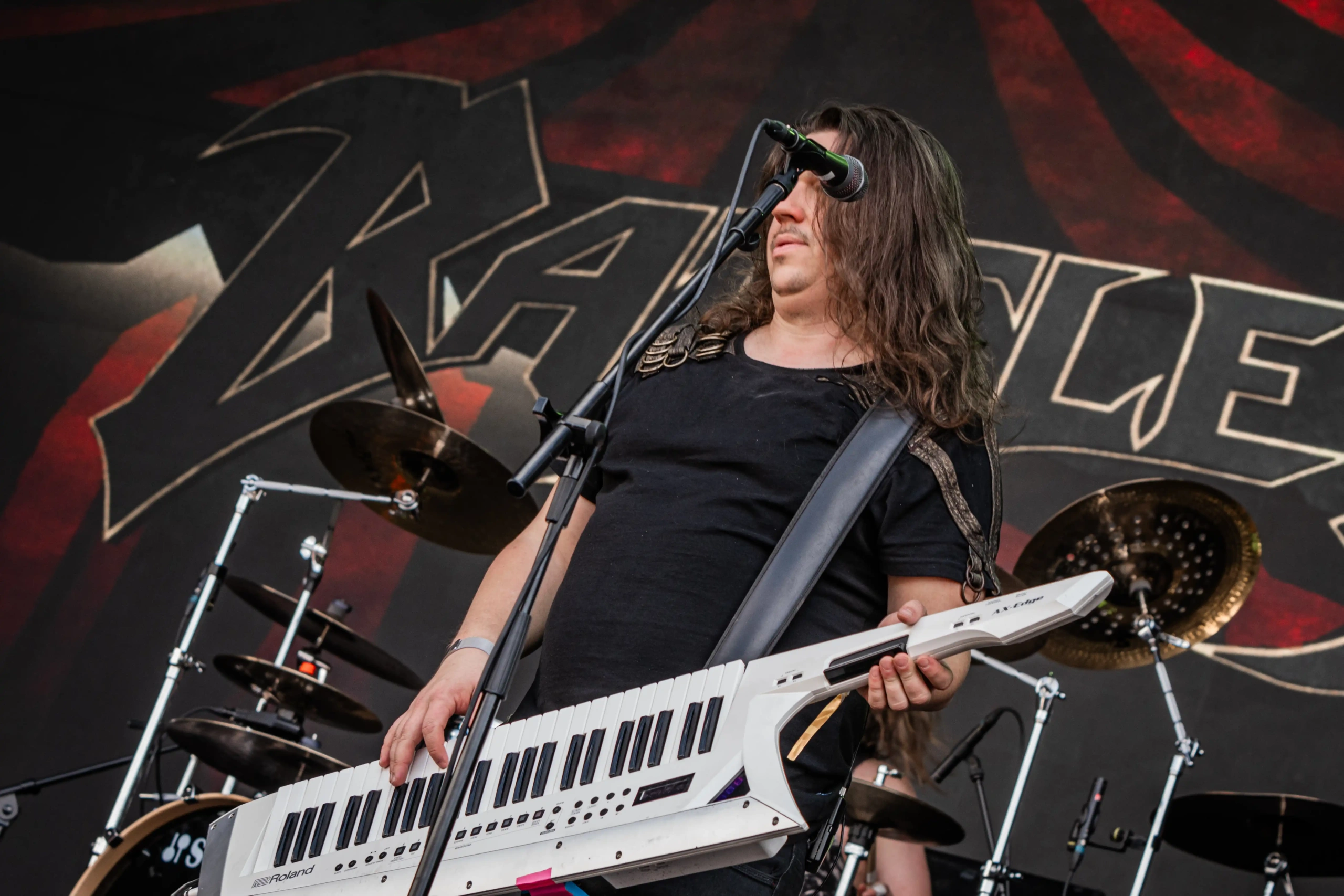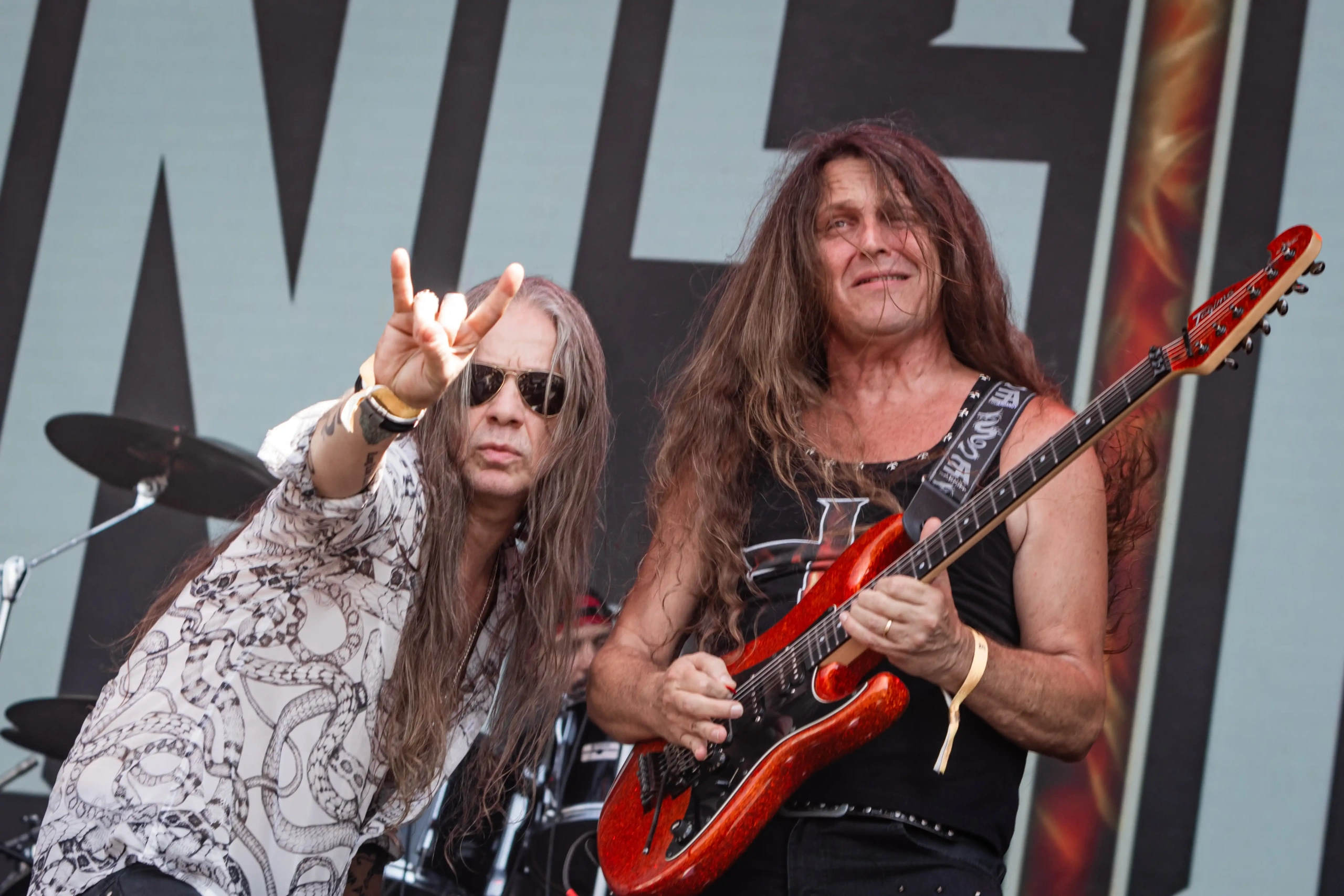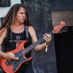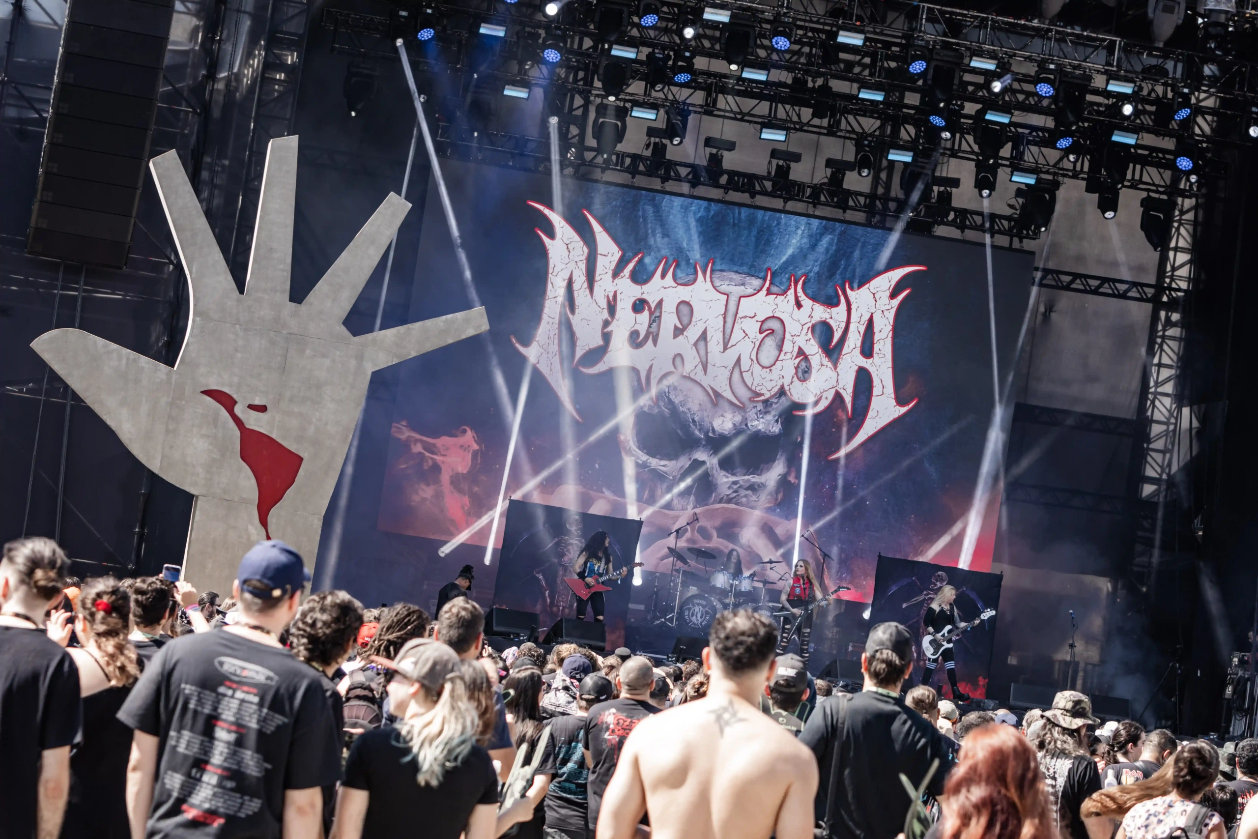 Passando a passarela nos separamos com os dois gigantes: Ice e Hot Stage. E o que nos esperava hoje, não era pouco. As meninas do Nervosa abriram os trabalhos no palco Ice e incendiaram o público, que abriu rodas e mais rodas, mostrando que ele já estava com energia às 11h. O Hot se acende e o massacre do Forbidden começa. Foi meu primeiro mosh do dia. E olha que sábado eu queria tomar cuidado, para poder estar inteira para me encontrar com a rainha. Teve uma pequena confusão, porque pisaram na mão de um garoto quando ele foi pegar seus óculos que caíram no chão, durante a roda. É bom ressaltar, que é sempre bom você não entrar em moshpits com óculos ou qualquer acessório que possa cair, porque a probabilidade dele se perder é grande. Fora essa questão, não aconteceram grandes tumultos. A plateia vai dispersando um pouco, à procura de sombras e bebedouros. O calor está no auge da tortura. Hora em que os alemães do Gamma Ray, liderado pelo senhor Kai Hansen, sobem ao Ice Stage já para me fazer chorar com Land of the Free, clássico do disco homônimo de 1995. E esse foi só o começo da epopeia de clássicos e conversas calorosas de Kai com o público. Um show impecável, que se encerra com uma das minhas favoritas Send Me A Sign, do álbum Powerplant de 1999.