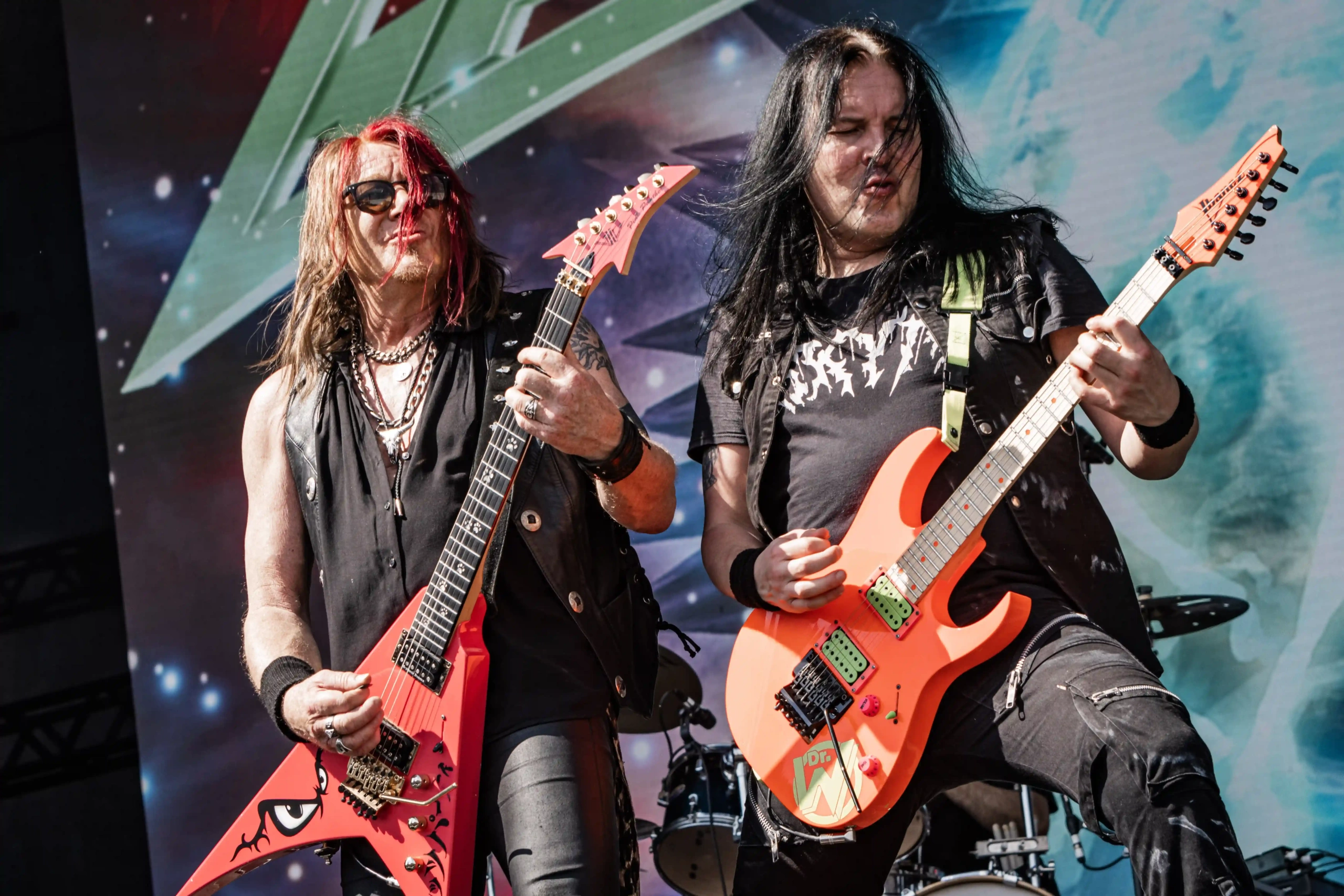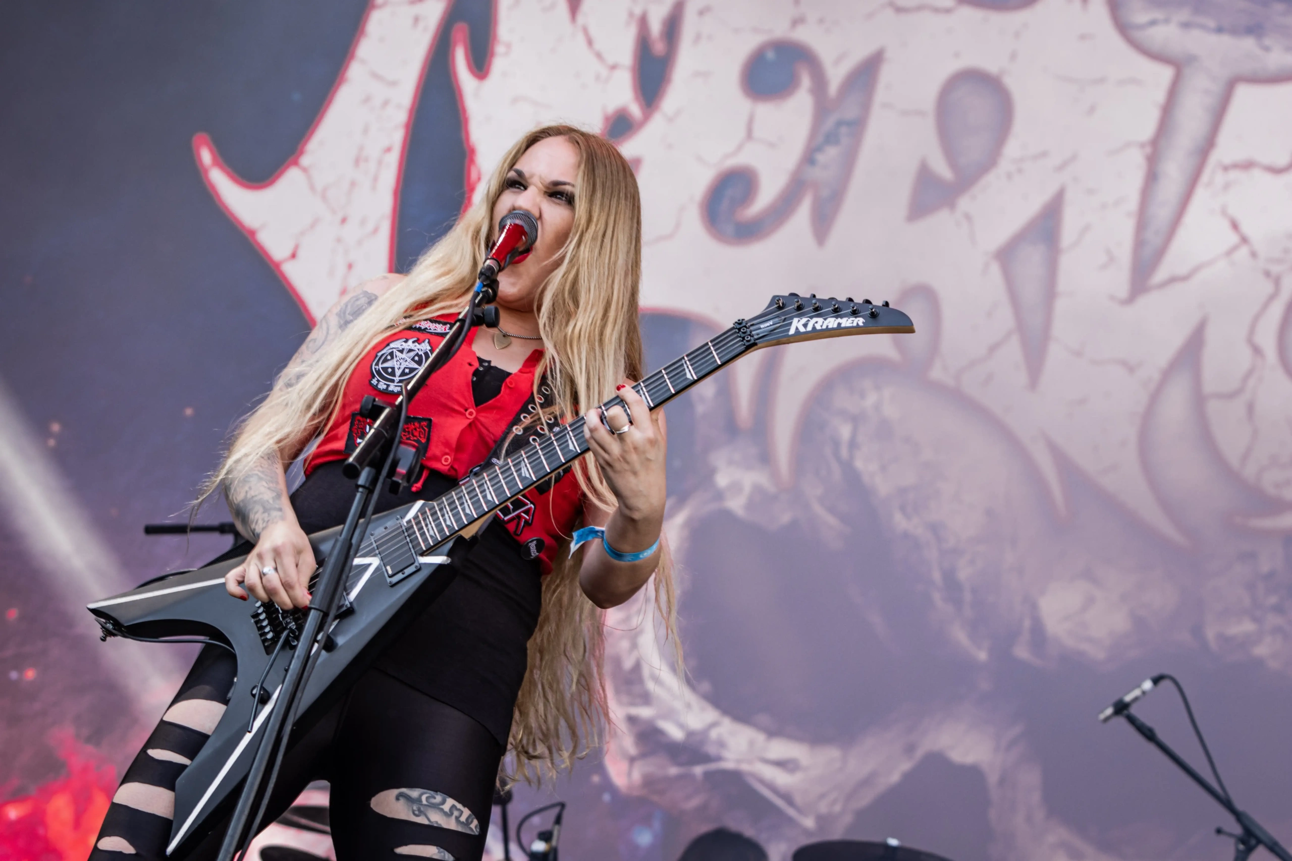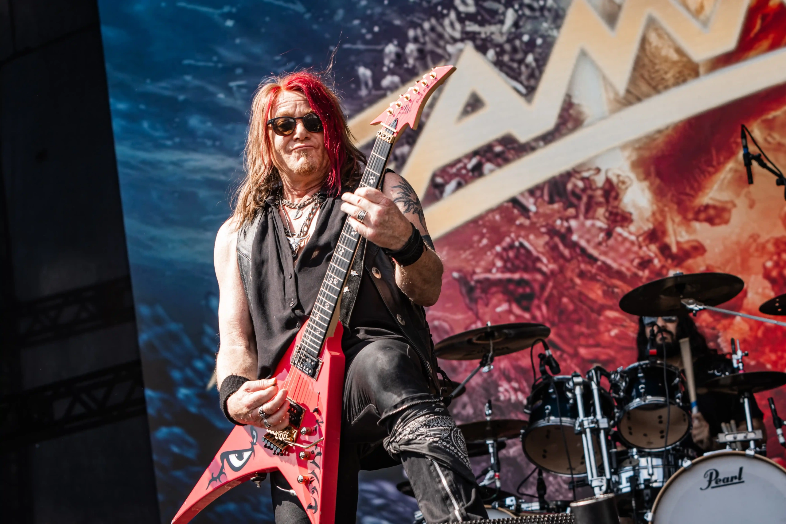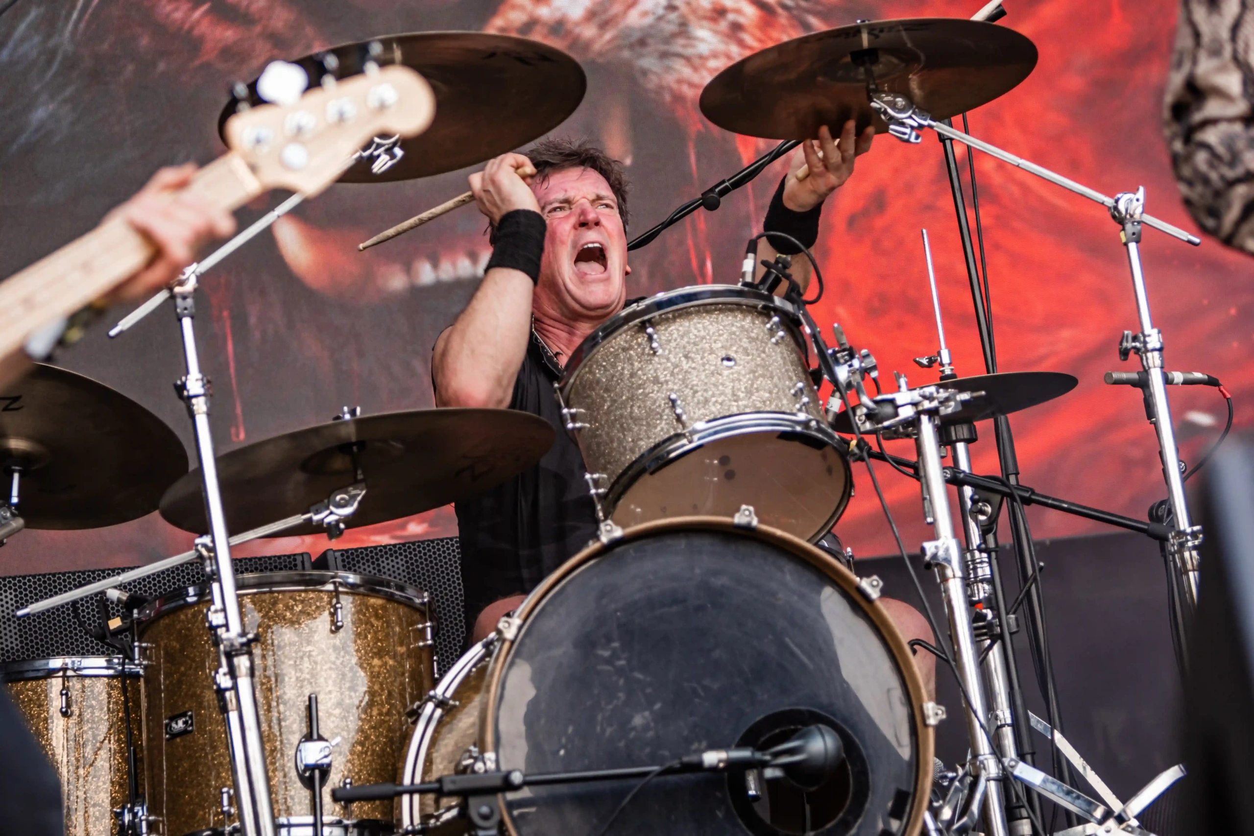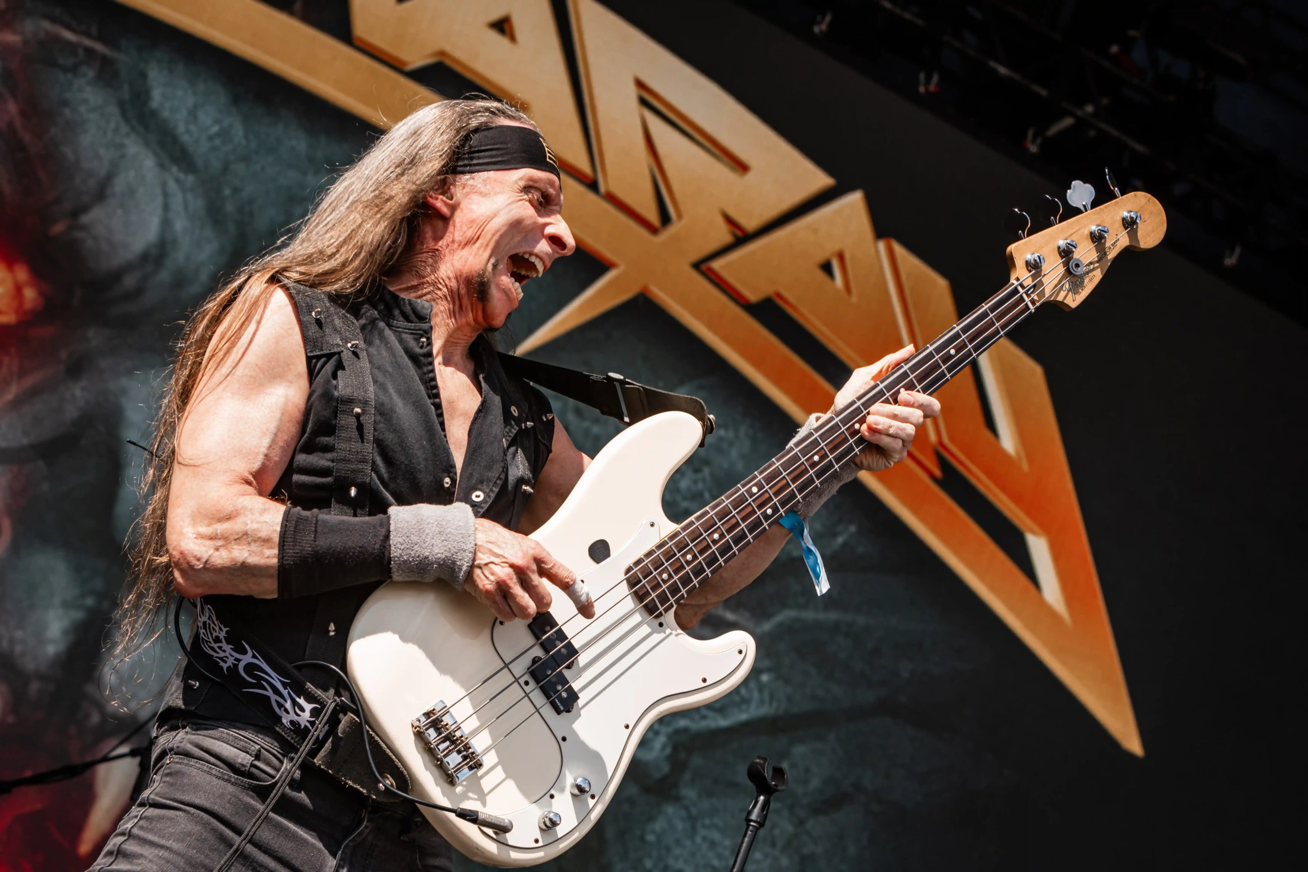 Passando a passarela nos separamos com os dois gigantes: Ice e Hot Stage. E o que nos esperava hoje, não era pouco. As meninas do Nervosa abriram os trabalhos no palco Ice e incendiaram o público, que abriu rodas e mais rodas, mostrando que ele já estava com energia às 11h. O Hot se acende e o massacre do Forbidden começa. Foi meu primeiro mosh do dia. E olha que sábado eu queria tomar cuidado, para poder estar inteira para me encontrar com a rainha. Teve uma pequena confusão, porque pisaram na mão de um garoto quando ele foi pegar seus óculos que caíram no chão, durante a roda. É bom ressaltar, que é sempre bom você não entrar em moshpits com óculos ou qualquer acessório que possa cair, porque a probabilidade dele se perder é grande. Fora essa questão, não aconteceram grandes tumultos. A plateia vai dispersando um pouco, à procura de sombras e bebedouros. O calor está no auge da tortura. Hora em que os alemães do Gamma Ray, liderado pelo senhor Kai Hansen, sobem ao Ice Stage já para me fazer chorar com Land of the Free, clássico do disco homônimo de 1995. E esse foi só o começo da epopeia de clássicos e conversas calorosas de Kai com o público. Um show impecável, que se encerra com uma das minhas favoritas Send Me A Sign, do álbum Powerplant de 1999.