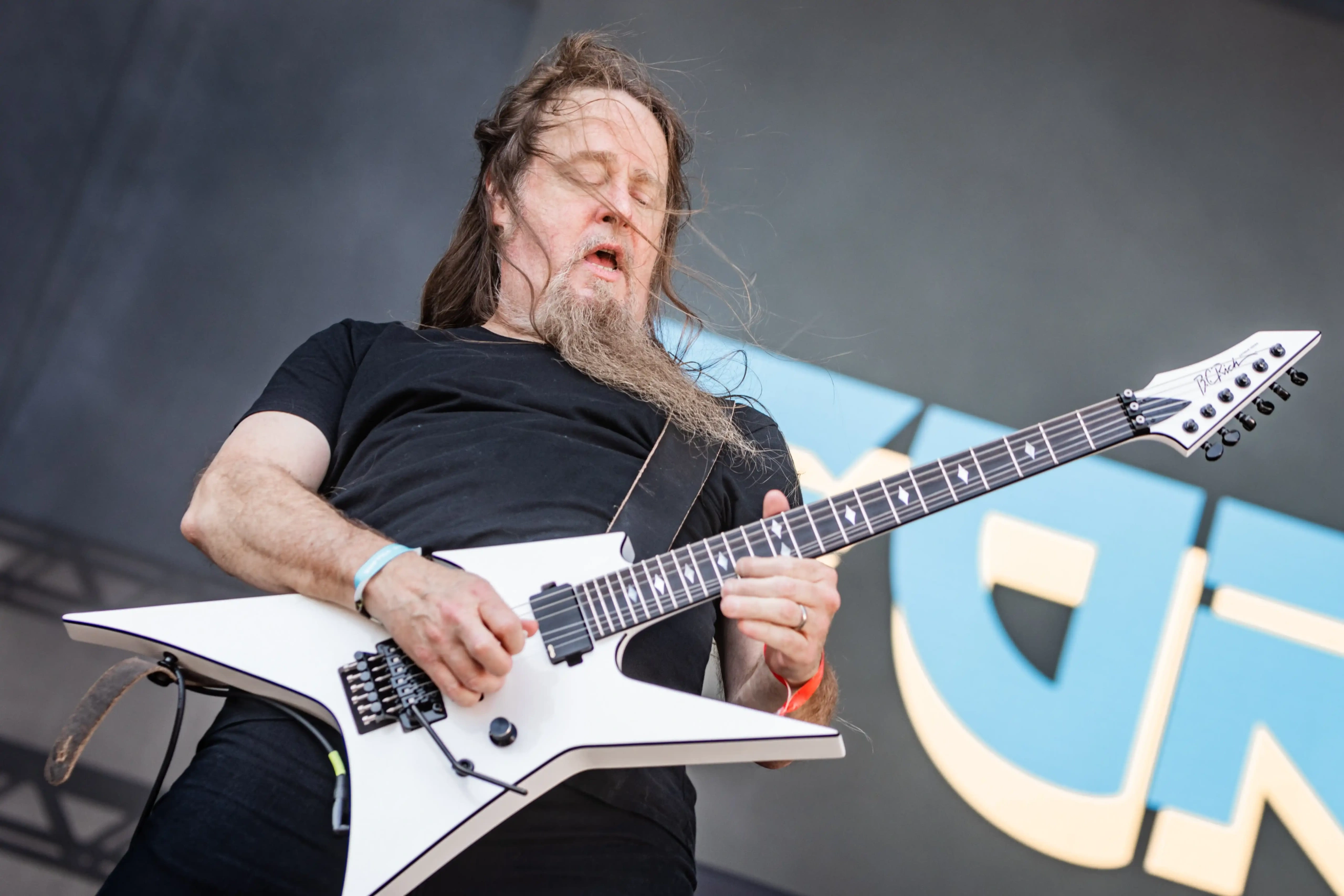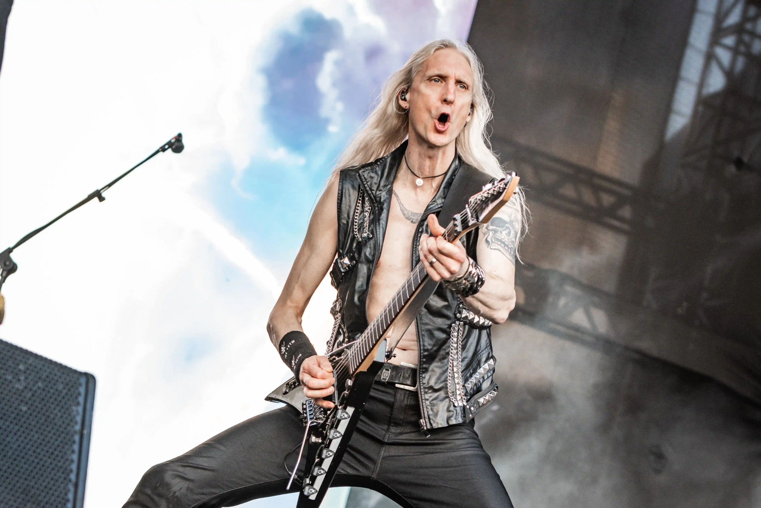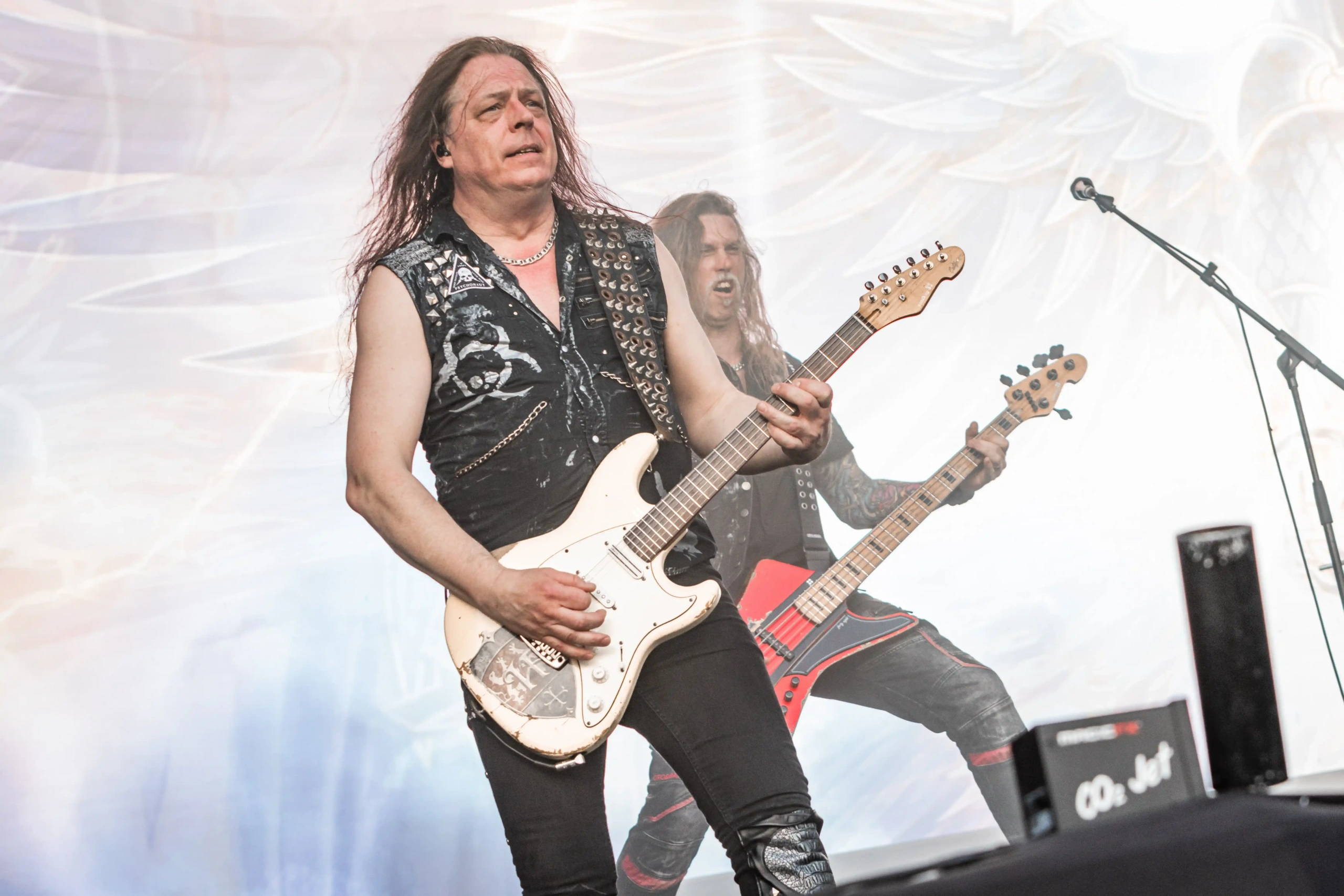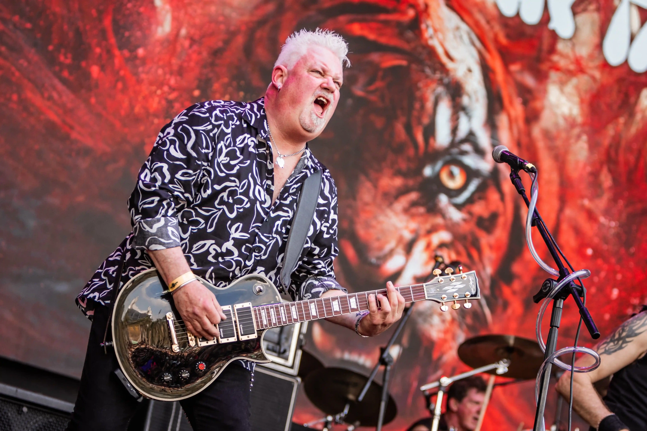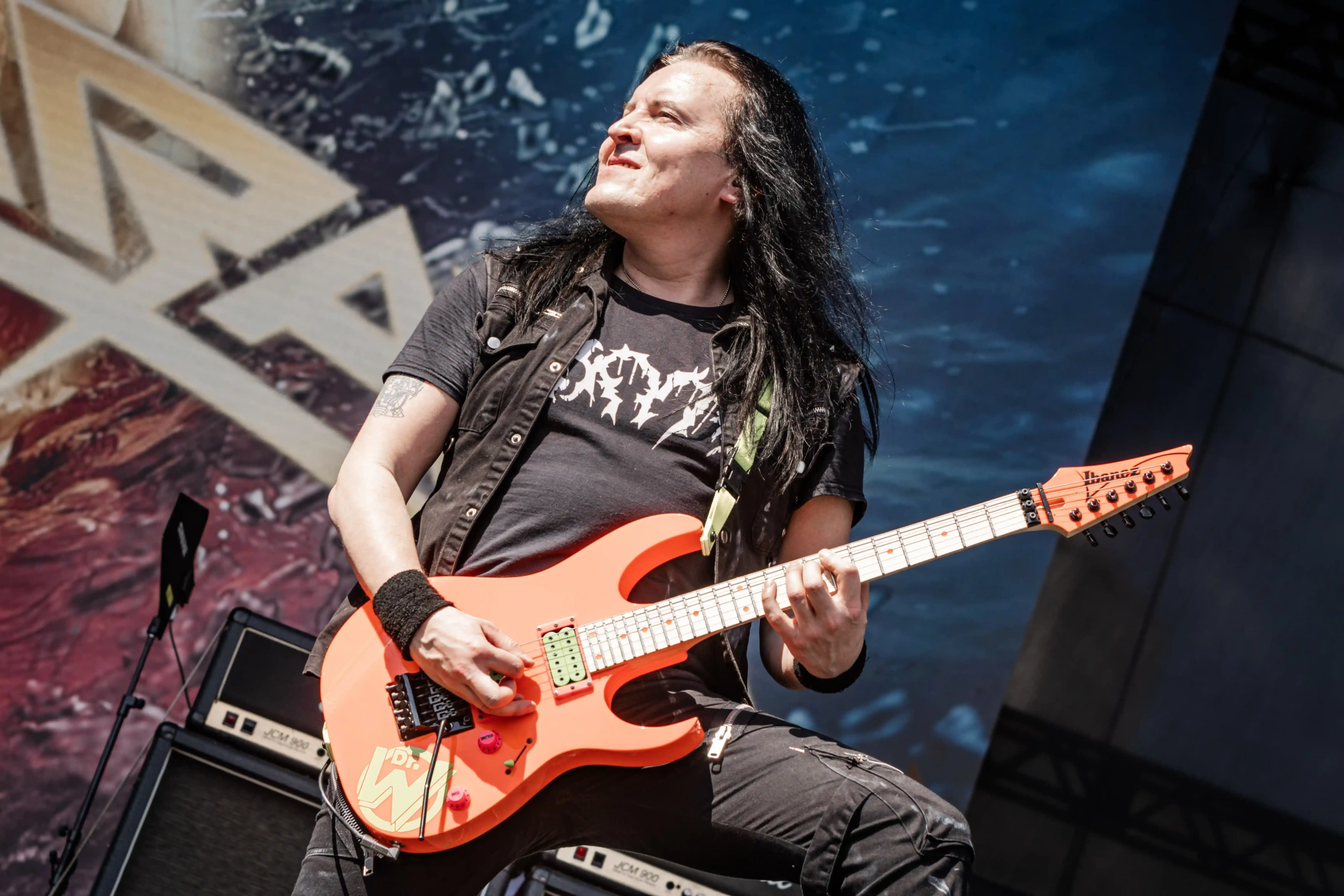 Passando a passarela nos separamos com os dois gigantes: Ice e Hot Stage. E o que nos esperava hoje, não era pouco. As meninas do Nervosa abriram os trabalhos no palco Ice e incendiaram o público, que abriu rodas e mais rodas, mostrando que ele já estava com energia às 11h. O Hot se acende e o massacre do Forbidden começa. Foi meu primeiro mosh do dia. E olha que sábado eu queria tomar cuidado, para poder estar inteira para me encontrar com a rainha. Teve uma pequena confusão, porque pisaram na mão de um garoto quando ele foi pegar seus óculos que caíram no chão, durante a roda. É bom ressaltar, que é sempre bom você não entrar em moshpits com óculos ou qualquer acessório que possa cair, porque a probabilidade dele se perder é grande. Fora essa questão, não aconteceram grandes tumultos. A plateia vai dispersando um pouco, à procura de sombras e bebedouros. O calor está no auge da tortura. Hora em que os alemães do Gamma Ray, liderado pelo senhor Kai Hansen, sobem ao Ice Stage já para me fazer chorar com Land of the Free, clássico do disco homônimo de 1995. E esse foi só o começo da epopeia de clássicos e conversas calorosas de Kai com o público. Um show impecável, que se encerra com uma das minhas favoritas Send Me A Sign, do álbum Powerplant de 1999.