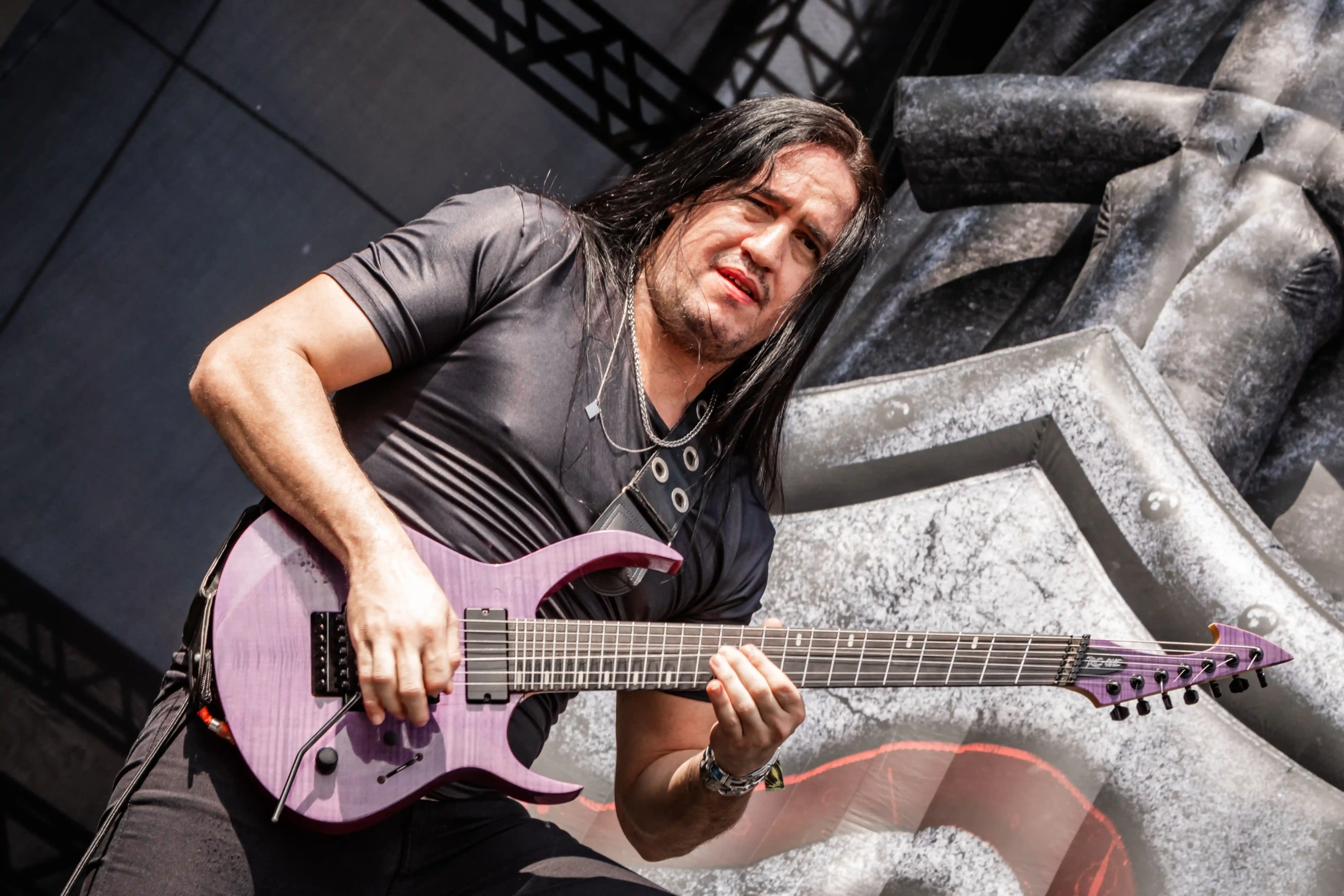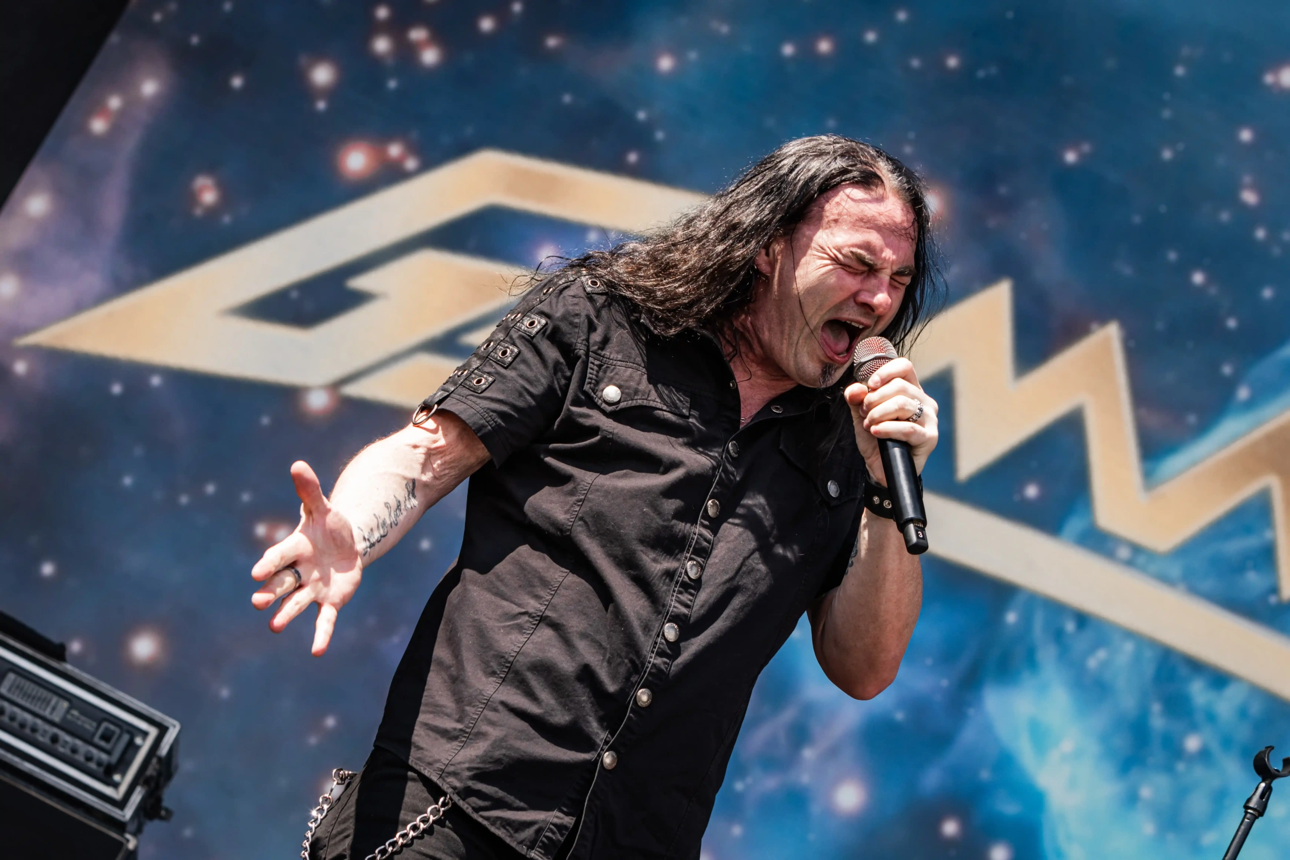 Passarela atravessada: Ice Stage e Hot Stage, os dois maiores e principais palcos do evento. Hot abriu com Flotsam & Jetsam por volta do meio-dia. Para quem não sabe essa é a banda que apresentou senhor Jason Newsted ao Metallica. Emocionada por me lembrar do primeiro mosh que eu participei no festival. Som pesado, plateia mega animada, senhor Knunston respondendo a altura e chamando o pessoal para a grade e para agitar o máximo que conseguisse. O calor estava forte, mas com o sol encoberto ficou um pouco mais fácil. Com o final do show, o palco vizinho, Ice, já acende e o queridíssimo Edu Falaschi entra desfilando clássicos de sua fase no Angra, já adiantando a tour Rebirth 20th Years. El Dorado, single do álbum atual e homônimo deixou a plateia emocionada. Bleeding Heart começou. Eu chorei, o menino ao meu lado chorou, segurando a mão de (acredito eu) sua namorada, um homem com um copo de cerveja chorava, gritando a letra, jogando a própria cerveja na cabeça. Uns cantavam a letra original, outros a versão em português da banda de forró, Calcinha Preta. Edu, com toda a sua simpatia, conversou muito com o público, que derretia num sol de 32°C, que pareciam 50°C. Pane nos instrumentos. Sem nem pestanejar, acapella, Falaschi começa “Faça elevar o cosmo do seu coração…” e a plateia respondeu a plenos pulmões: “Saint Seya”! Tudo consertado e continuamos com Rebirth, até chegar ao final apoteótico com Nova Era.