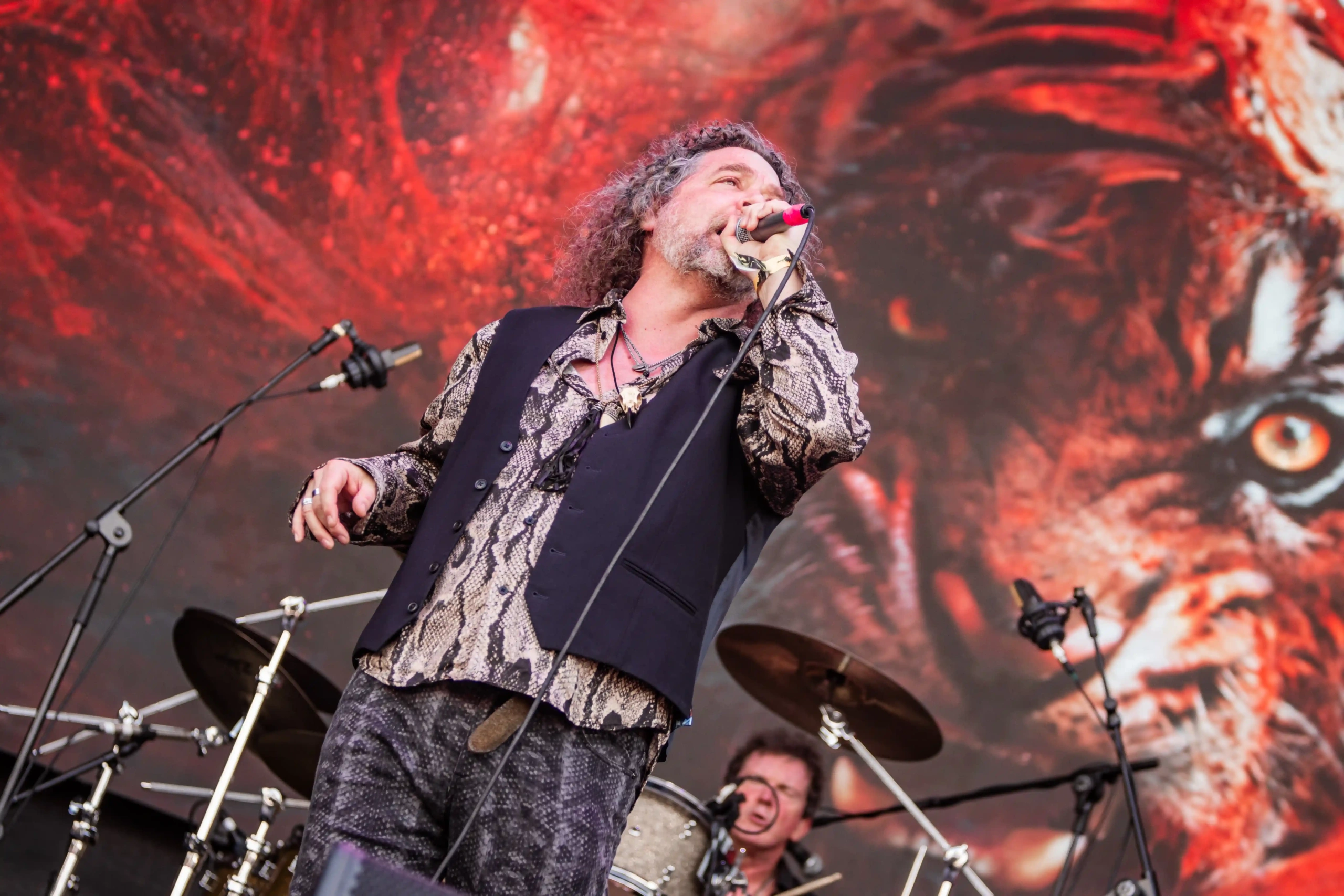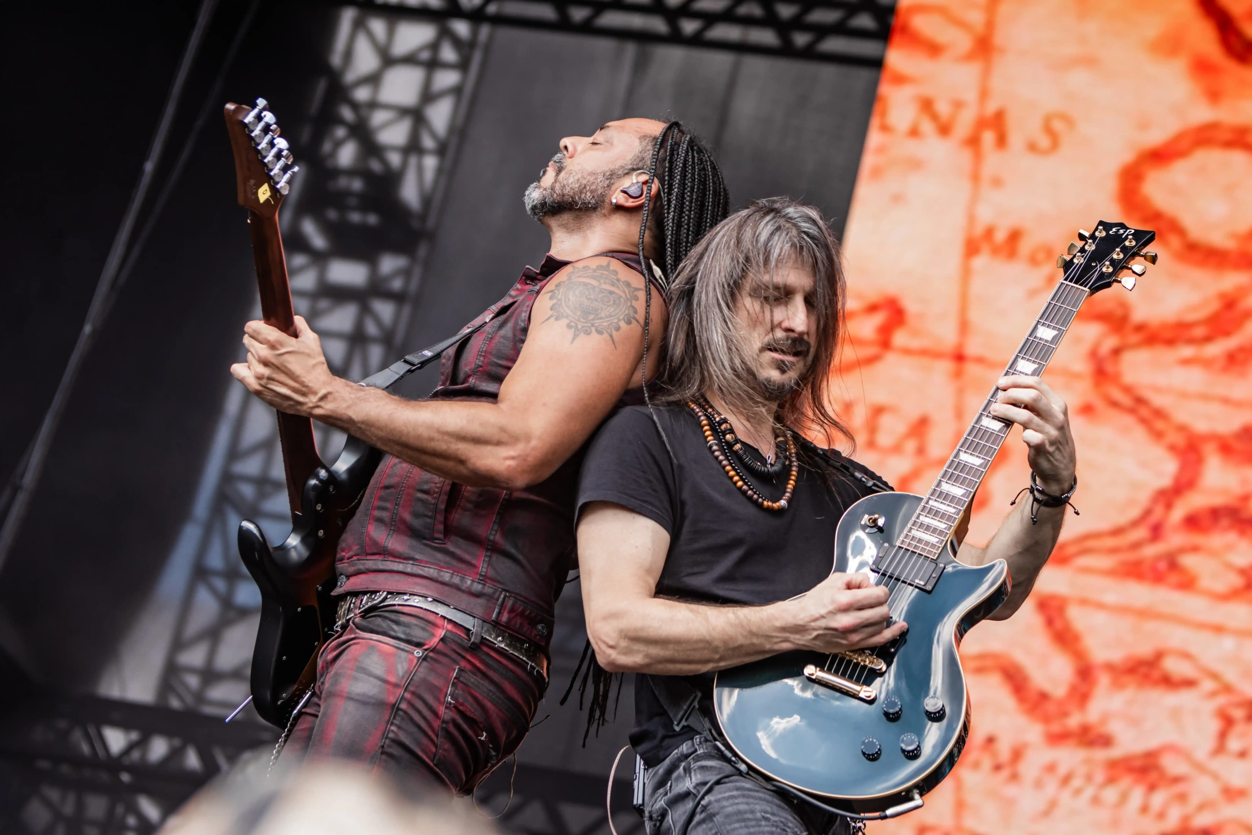 Eis que todos se aglomeram em frente ao Hot Stage. É hora dela, da rainha, da Rainha de Gelo, Sharon Den Adel, com o Within Temptation. Nessa hora eu me desliguei do mundo. Não queria saber de mais nada. Eles já entram com o peso de The Reckoning. A Rainha com a sua coroa, envolta numa bandeira do Brasil, com o logo do Summer Breeze, foi sua maneira de homenagear quem tanto a celebra. Um casal estava seguindo a banda por toda a América Latina e disseram não cansar de se surpreender e se emocionar. Antes de cumprimentar seus súditos, Sharon ainda emendou Faster e Bleed Out. Durante todo o repertório vi minha vida passar como um filme perante meus olhos. Então apareceu Never – Ending Story, numa versão acústica e eu desabei. Minha adolescência foi ouvindo o disco Mother Earth, e minha mãe amava essa música. Foi muito especial. Ice Queen foi limada do set, por conta da parada do show para que uma fã fosse atendida pelos bombeiros e retirada da plateia. Den Adel fez questão de parar o show e pedir para que as pessoas dessem passagem para a equipe de bombeiros. Passado o problema, a banda retomou de onde parou, mas isso custou o hit de maior expressão aqui no Brasil. Mas saúde e bem-estar sempre em primeiro lugar! O encerramento foi com a já tradicional Mother Earth.