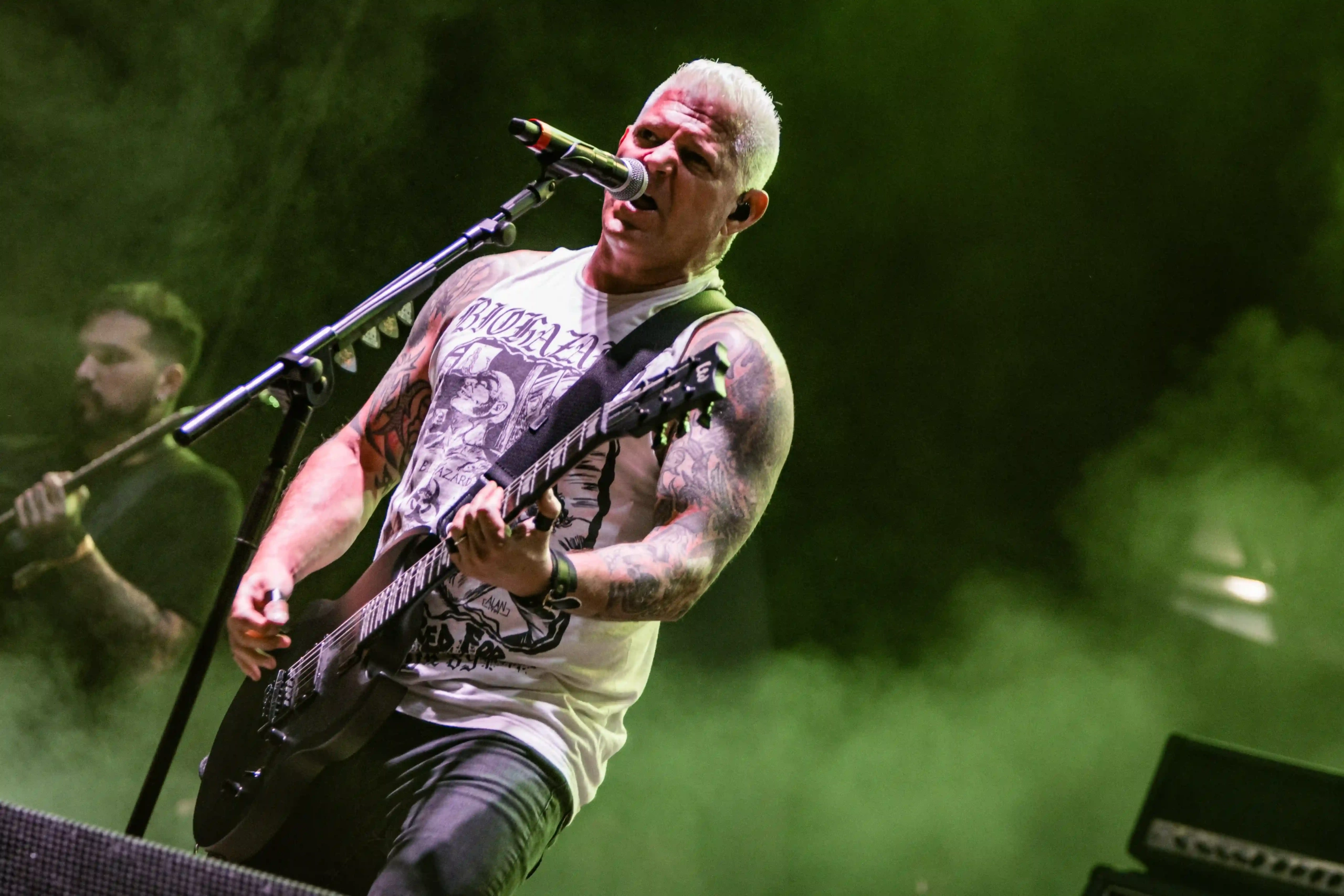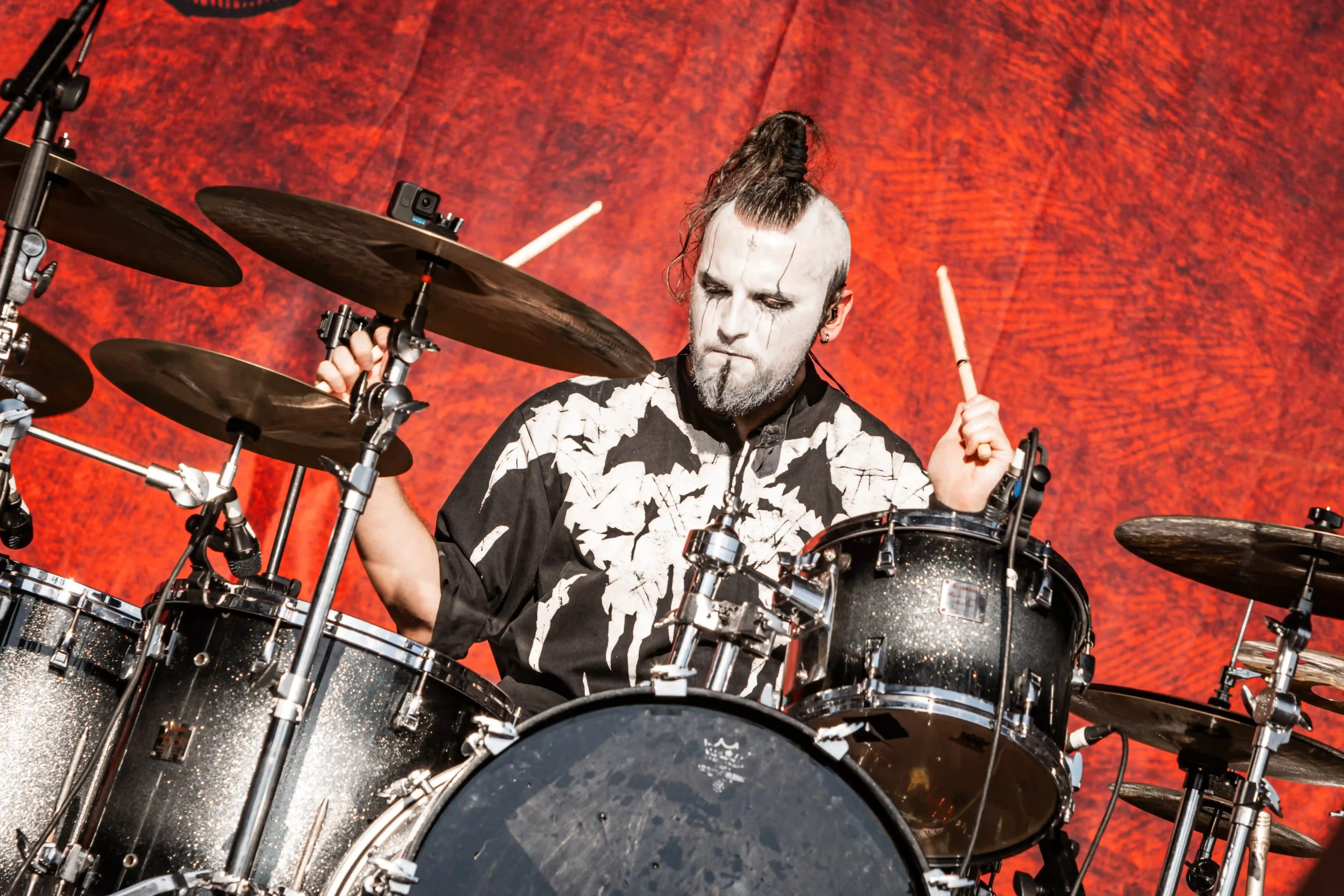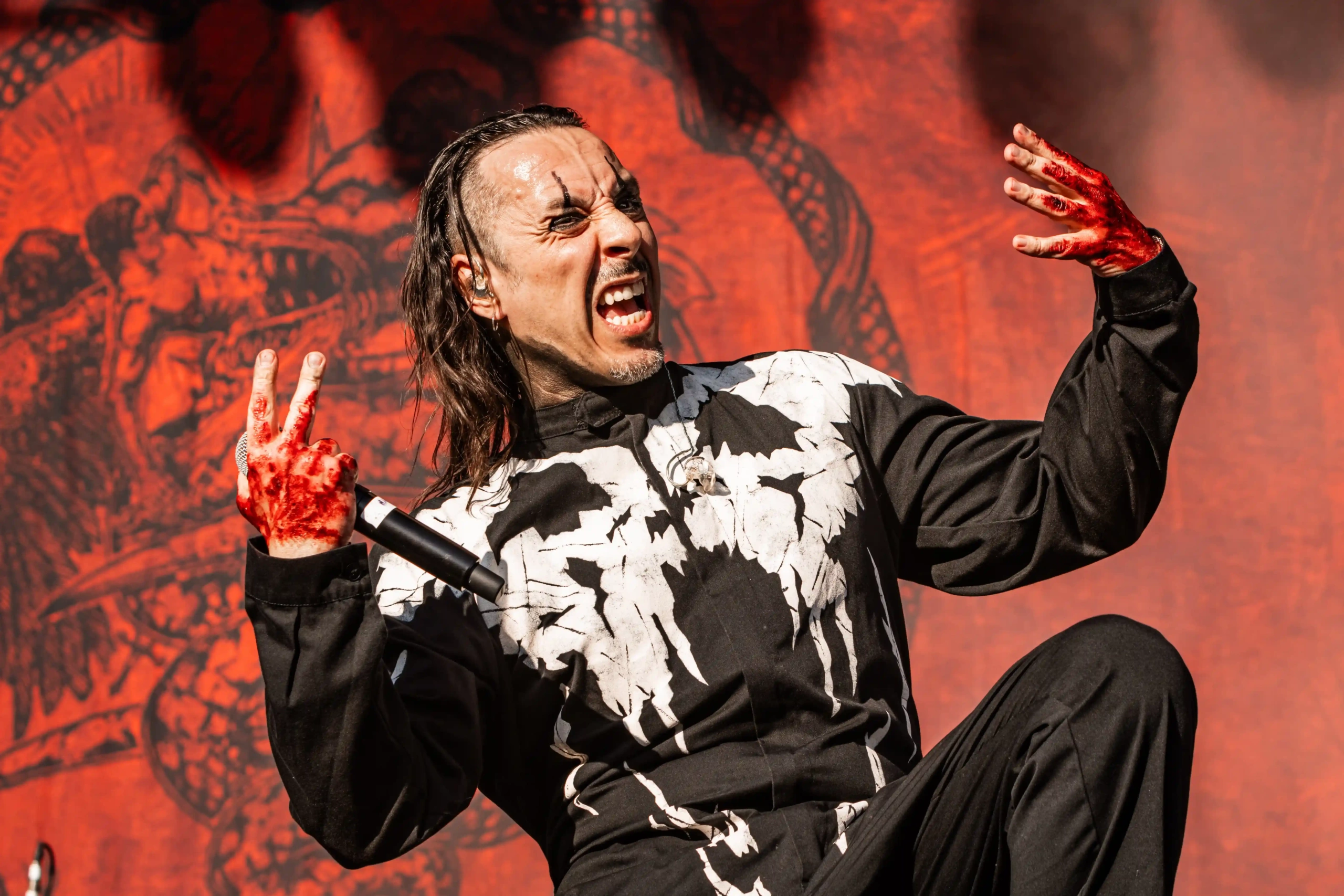 Ice Stage iluminado, e a lenda do thrash de New Jersey, Overkill sobe ao palco já com a porrada Scorched, que agitou todo mundo, criando um mosh insano, que levantou poeira do chão. David Ellefson (ex-Megadeth) tocou com a banda, inclusive durante os solos de bateria e baixo, fez um trecho de Peace Sells, para delírio de todos os presentes. Encerraram com Fuck You, um cover do Subhumans. Ice Stage apaga, enquanto um pequeno teste de aparelhagem era feito no Hot Stage. O tempo serve para o público tentar se proteger um pouco do sol, em qualquer sombra que encontrasse, reabastecer os squeezes de água, comprar mais cerveja, ou um boné… o domingo estava bem complicado para os que não são tão íntimos do sol. Calor batendo quase 36°C quando os suecos e performáticos do Avatar subiram ao palco. E para quem pensou que esse calor afastaria os nórdicos de qualquer coisa, se enganou. O palco estava mais quente que nunca. Um pedido de casamento foi feito durante o show, e quando Johannes Eckerström, vocalista, percebeu a cena, disse que “gostaria do convite para a festa”. Eles abriram o show com Dance Devil Dance, o que literalmente fez a plateia abrir uma roda imensa e dançar como num sabá. Era um ritual. Johannes tocou seu piano em Tower, que emocionou muita gente e encerrou com Hail the Apocalipse. Show perfeito, sem maiores problemas além do calor.