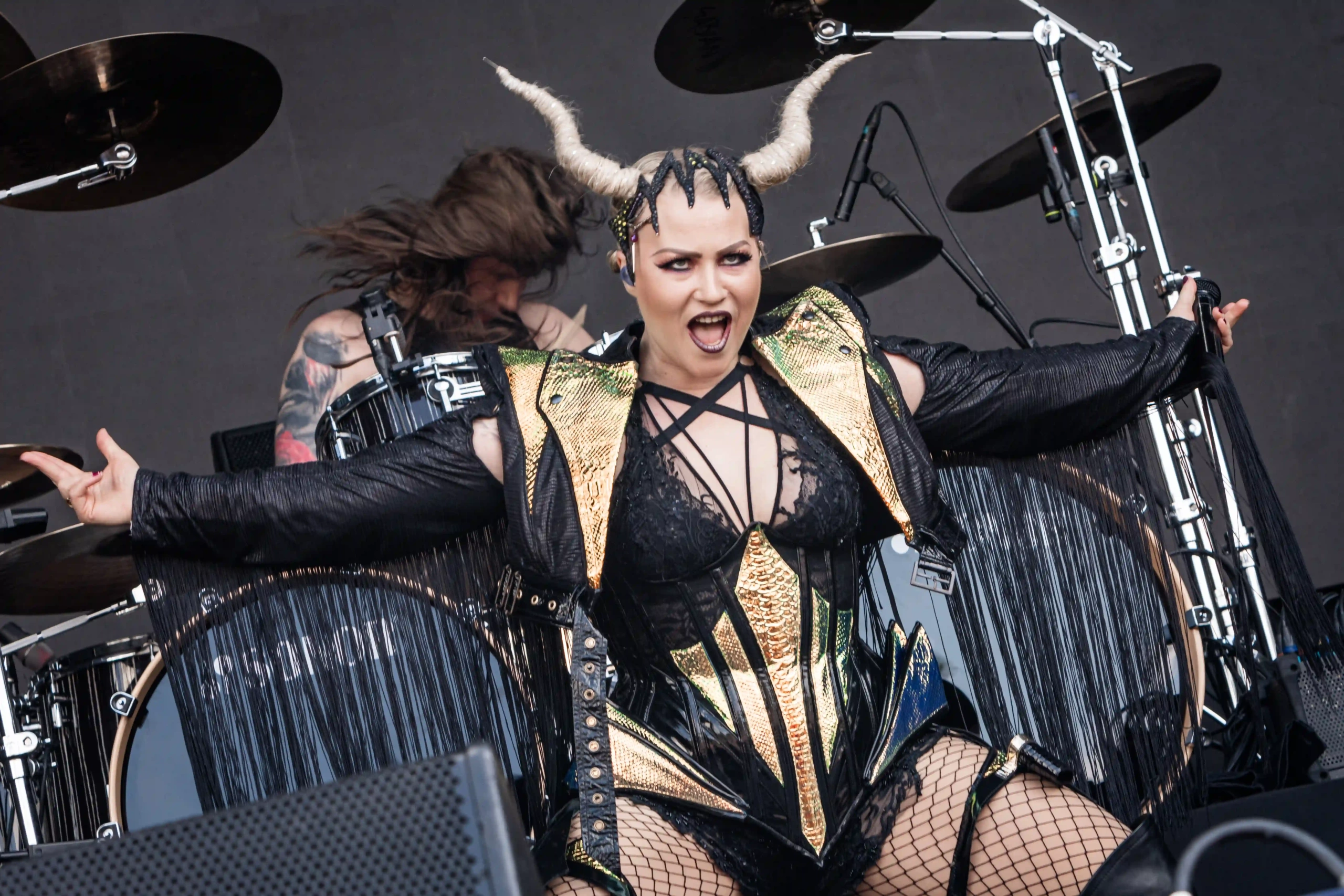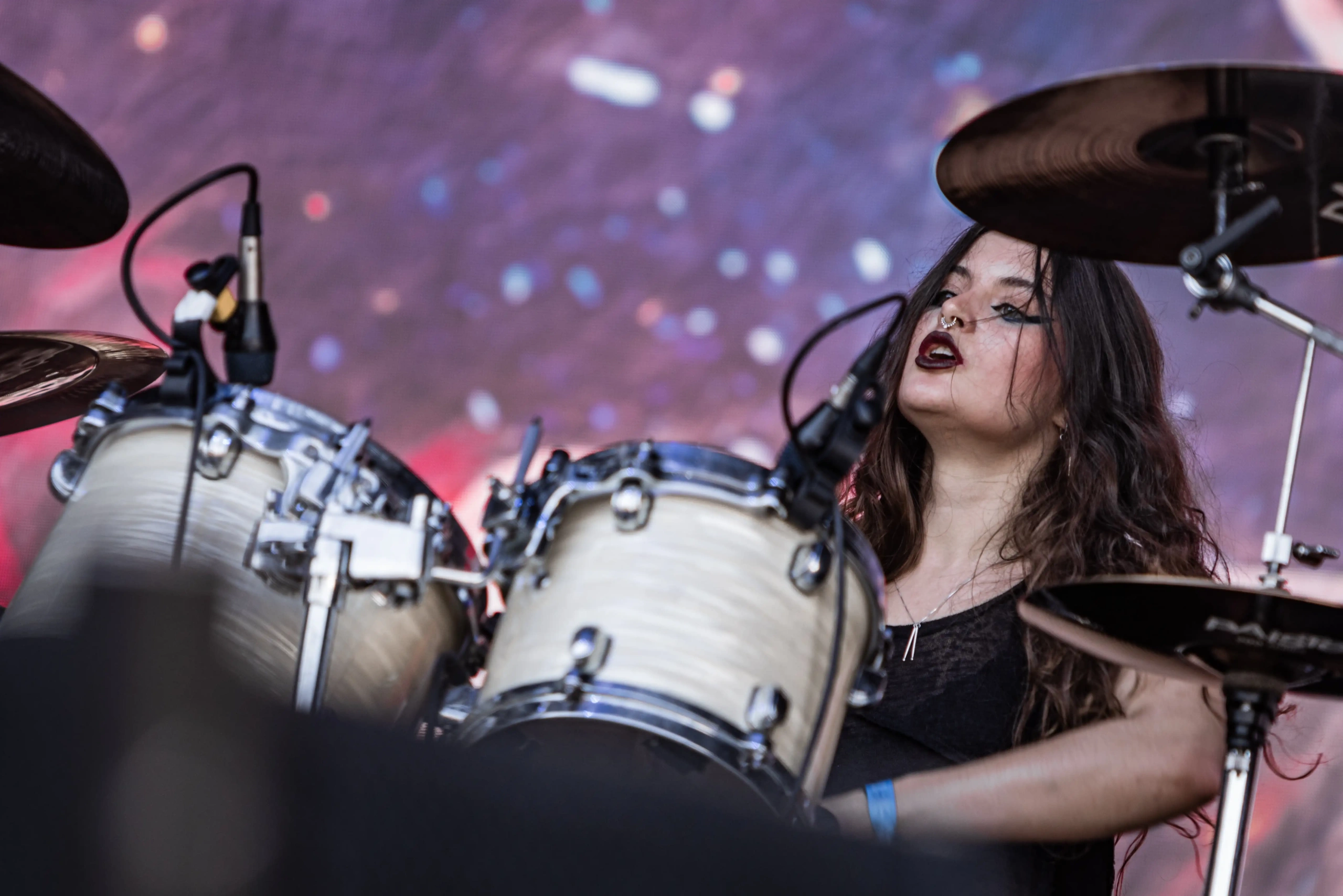 Momento de pura nostalgia adolescente no Hot Stage, com a entrada do Angra. Para quem esteve presente nos 3 dias, reparou que o setlist era parecido, muitas vezes até repetindo as mesmas músicas, como foi o caso de Rebirth, por exemplo. Mas os fãs do Angraverso não ligam para isso, tanto que com um calor descomunal de 36°C, a plateia estava lotada, pulando e se divertindo muito com Rafael Bittencourt, “il mago” Fabio Lione, Marcelo Barbosa, Felipe Andreoli e Bruno Valverde, que por sinal, emocionaram muito quando cantaram Vidas Secas. Foi um momento memorável. E continuando com a saga dos italianos, Cristina Scabbia e o Lacuna Coil, chegaram para encantar e incendiar o público do Ice Stage. Já ganharam meu coração abrindo o set com Blood Tears Dust, emendando com Reckless. Dupla matadora para mim. Algumas rodas se abriam, e Cristina interagia muito com a plateia, achando graça do esforço de todos para dizer alguma coisa em italiano. Simpática, disse que estava muito feliz em estar de volta e fizeram um show standard, um show para você conhecer o melhor da banda. Até a versão maravilhosa de Enjoy the Silence, hit eterno do Depeche Mode, entrou no set, o que me deixou com o coração quentinho.