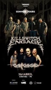 Dito isso, trazemos pra vocês algumas Summer Tours já anunciadas e se a sua cidade está inclusa na passagem desses artistas, é a chance de ver shows ímpares. Curitiba, uma cidade no qual tem se solidificado como uma belíssima praça para shows, esse ano receberá 3 bandas na Summer Tours, sendo elas, bem diferentes entre si, mas todas com um peso monstruoso no cenário do Rock/Metal mundial, sendo no dia 26 de abril a passagem única de uma junção devéras interessante, na Tork n´Roll, Carcass e Killswitch Engage e no dia 27 de abril o lendário vocalista Sebastian Bach aportará, também na Tork n´Roll, oferecendo aos Curitibanos um show deveras especial, tocando o primeiro disco do Skid Row, na íntegra. Vejam os serviços e cartazes abaixo.