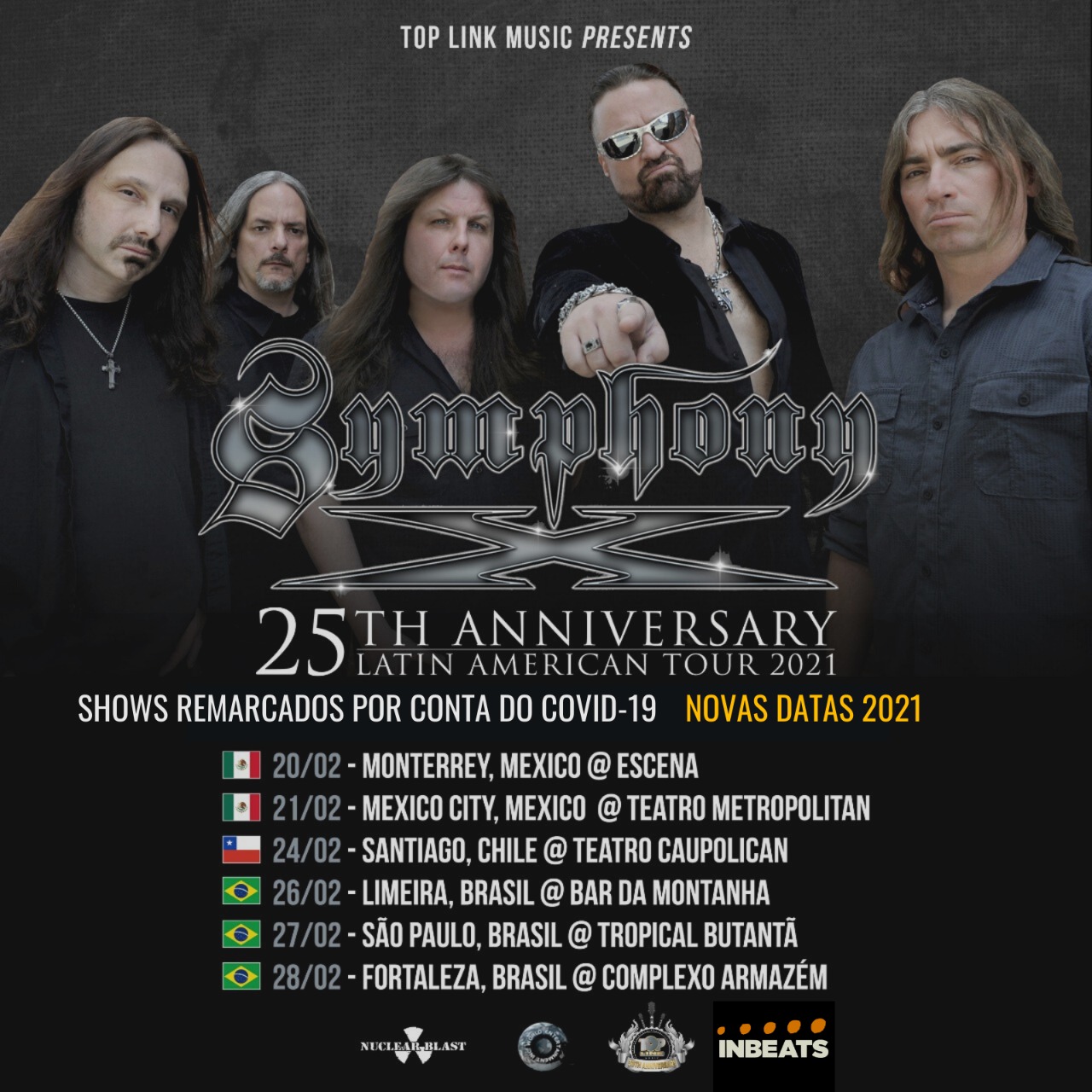 Devido à pandemia de Covid-19, banda de metal progressivo Symphony X adiou o seu retorno à América Latina para fevereiro de 2021 com sua turnê especial em comemoração aos 25 anos de carreira. Ainda restava a esperança de que os shows da seminal banda, marcados para agosto, ainda acontecessem esse ano. No entanto, hoje temos a confirmação do adiamento dos shows para 2021. São Paulo, Limeira (SP) e Fortaleza continuam na rota.