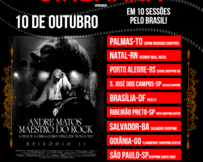Evento marca os 6 anos sem Andre Matos com sessões dos dois episódios do documentário “Maestro do Rock”, com ingressos…