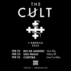A concorrida turnê que celebra os 40 anos da banda britânica The Cult, uma das mais emblemáticas e importantes formações da história do rock, enfim chega ao Brasil neste mês de fevereiro com três apresentações – todas as datas com a norte-americana de heavy metal Baroness como banda convidada. Os shows acontecem no Rio de Janeiro/RJ (22/02, Viva Rio), São Paulo/SP (23/02, Vibra SP) e Curitiba/PR (25/02, Live Curitiba).