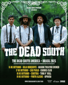 Com elementos de bluegrass, folk e rock alternativo e com trajes inspirados no Velho Oeste, incluindo suspensórios, chapéus e camisas brancas, o quarteto canadense The Dead South faz a aguardada estreia no Brasil em outubro deste ano, com shows em Belo Horizonte/MG (15/10), São Paulo/SP (17/10), Curitiba/PR (18/10) e Porto Alegre/RS (19/10).