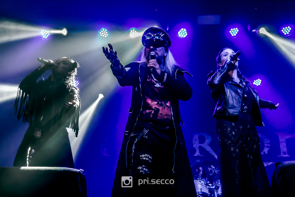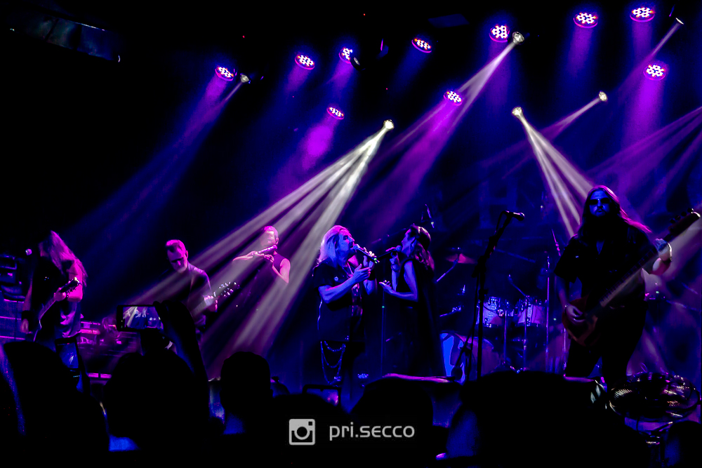 As 20:30 em ponto as luzes apagam e começam os primeiros acordes de Seven Secrets of Sphinx, levando a plateia ao delírio. Muito sorridentes os três vocalistas da banda, Thomas Vikström, Lori Lewis e Rosalía Sairem mandavam beijos e faziam corações para os presentes no local, enquanto se revezavam cantando com uma potência característica das bandas do estilo. A banda, alem dos três vocalistas e do seu “donoChristofer Johnsson na guitarra, ainda contava com Sami Karppinen na bateria, Christian Vidal na guitarra e Chris Davidsson no baixo. Vale ressaltar que o baixista e a vocalista Rosalía Sairem são músicos de tour do Therion, não sendo considerados “membros oficiais”.