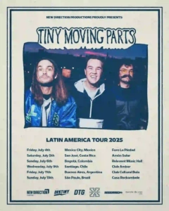 A combinação balanceada e dinâmica entre o math Rock, emo e post-hardcore define muito bem a banda norte-americana Tiny Moving Parts, que faz a sua estreia na América Latina em julho deste ano, com shows no Brasil, Argentina, Chile, Colômbia, Costa Rica e México. A realização é da ND Productions.