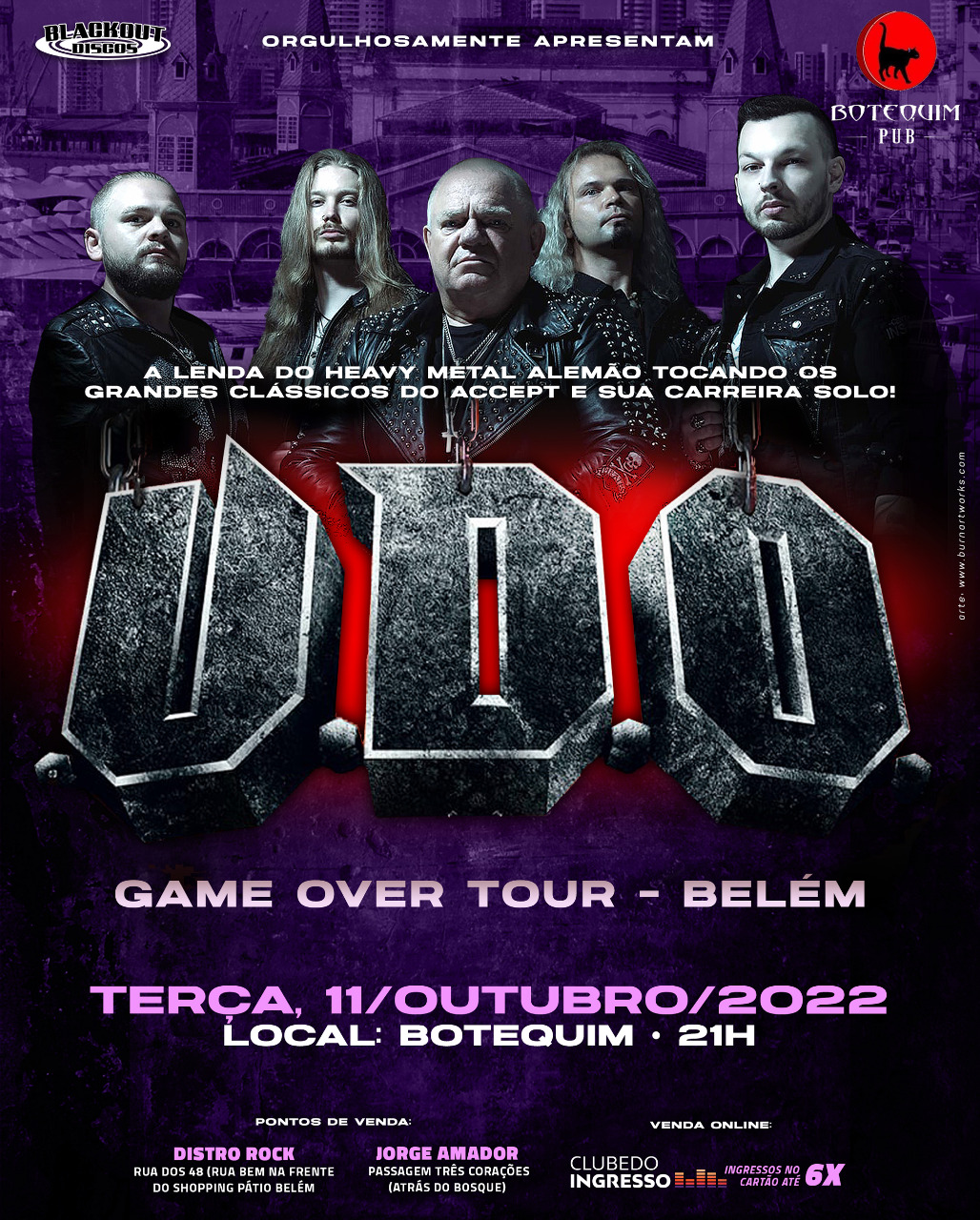 O show do U.D.O. em Belém será realizado na casa de shows e Pub Botequim, localizado na Av. Gentil Bitencourt, 1445, bairro de Nazaré. Os ingressos, que variam de 100 a 200 reais, podem ser adquiridos no site Clube do Ingresso: https://www.clubedoingresso.com/evento/udo-belem.