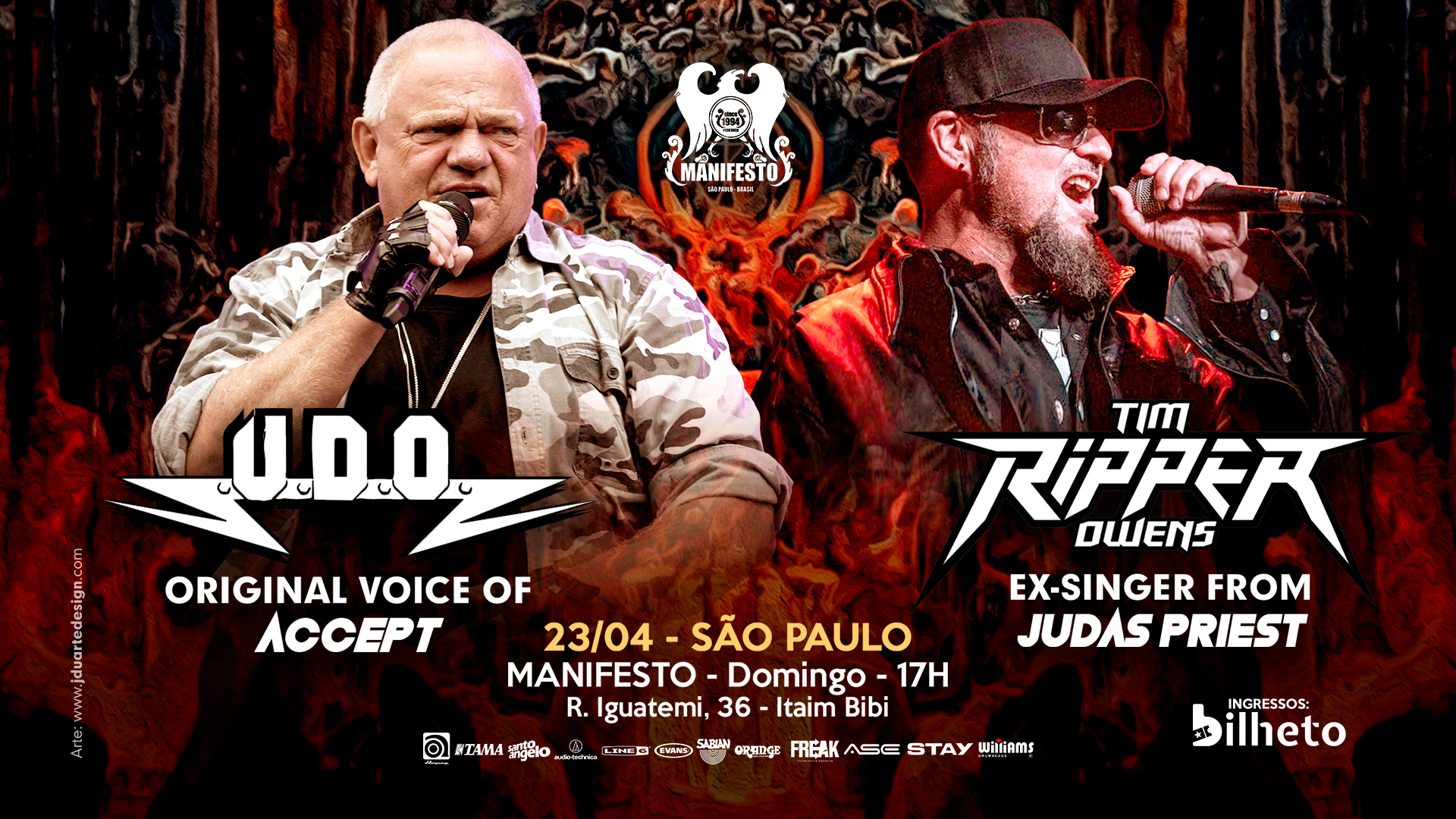 Ingressos antecipados online: https://www.bilheto.com.br/evento/1258/UDO_e_Tim_Ripper