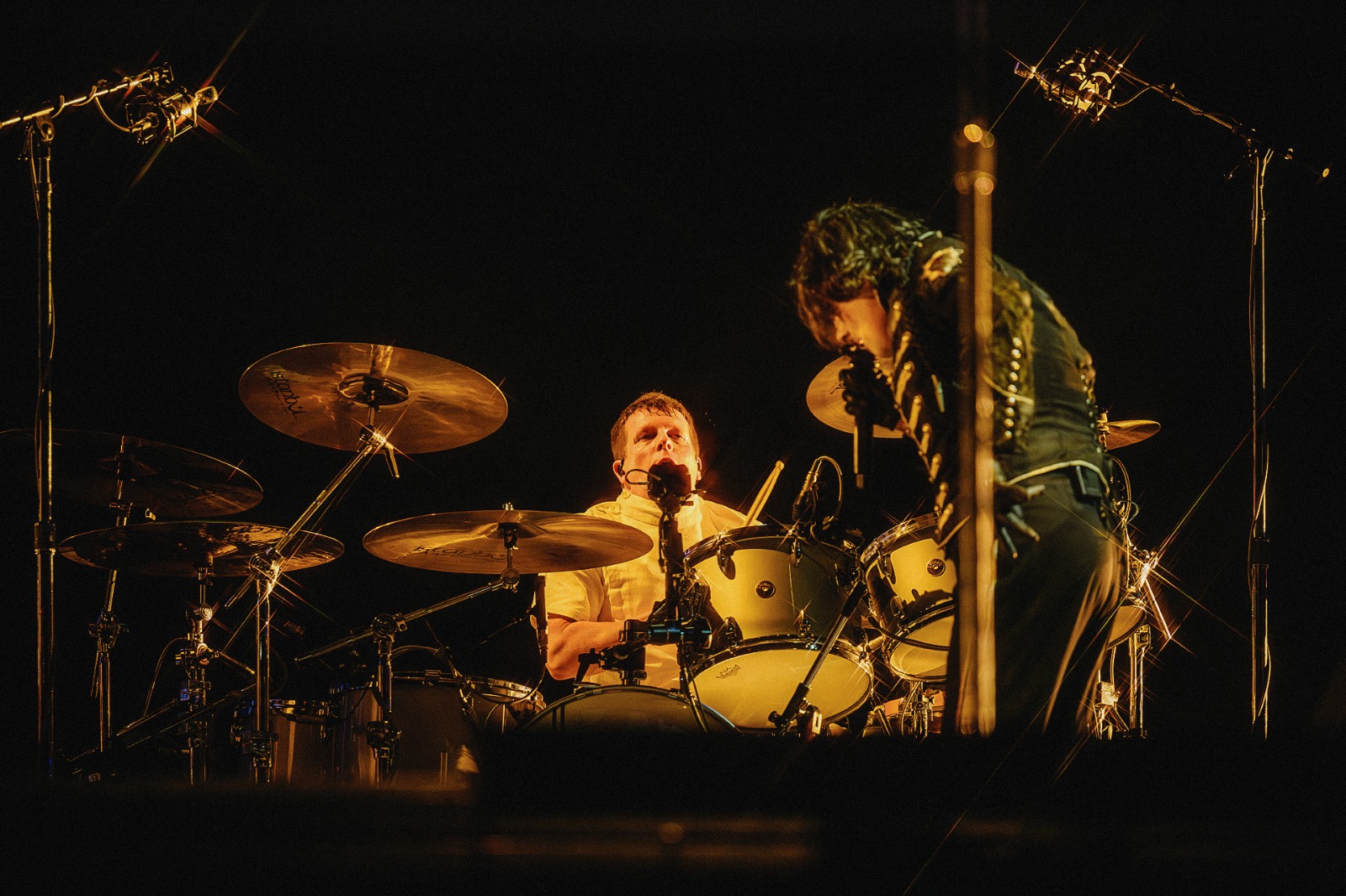 É nesse momento que o show vira catarse: pulos sincronizados, gritos, lágrimas misturadas com sorrisos. O público deixa de apenas acompanhar e passa a conduzir parte da energia da apresentação. Canções mais antigas e queridas aparecem como presentes para os fãs, reforçando o vínculo emocional construído ao longo de décadas.