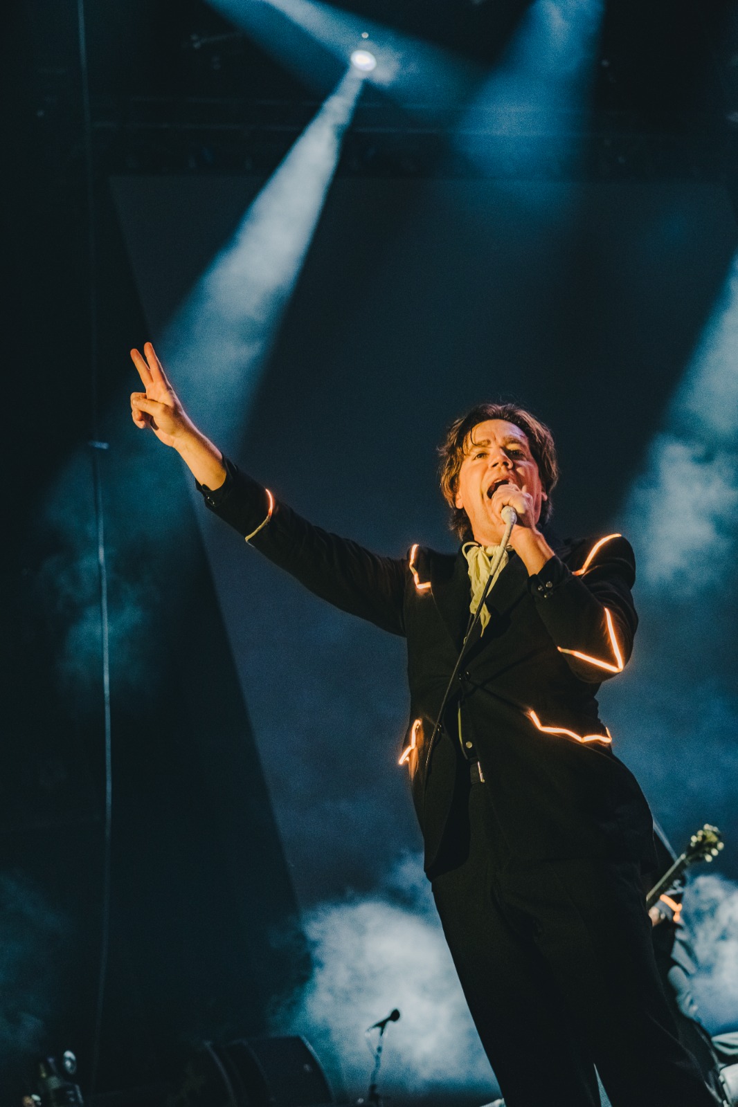 Já a segunda parte do show marca uma virada clara de energia. O clima fica mais solto, explosivo e celebrativo. Aqui, entram as músicas mais agressivas, dançantes e populares, aquelas que transformam a pista e as arquibancadas em um coro ensurdecedor. A banda interage mais com o público, há mais movimento no palco e uma sensação de libertação toma conta do estádio.