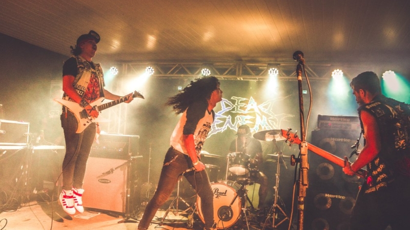 Felizmente, a chuva que caiu durante a noite não atrapalhou em nada o festival com DEAD ENEMY, DAMN YOUTH e VIOLATOR (as duas primeiras, de Fortaleza, e o VIOLA, de Brasília). São Pedro, Thor, Zeus ou Tlaloc deram uma folga aos raios e à chuvarada por exatamente o tempo necessário para que as três bandas (e algumas dezenas de fãs) subissem ao palco do Hard Noise, no Benfica.