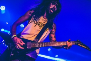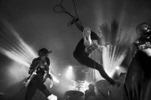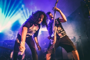 Às 21:30, primeira no palco, a DEAD ENEMY, começou sua apresentação enérgica e contundente prometendo “tocar uma atrás da outra, sem falar besteira”. E o mosh já estava quebrando costas durante canções como “Take me Out of This…” e “Words of Lying Fellowship”. Com Fernando Gomes no vocal, Mateus Sales na bateria, Júnior Linhares na guitarra e Victor Rasga no baixo, o quarteto despejou seu crossover em cima dos bangers, que violentamente se entregavam ao mosh pit ou aos stage dives. “Politicians are like Cancer”, o primeiro som que fizeram, não poderia faltar e não faltou. “Aqui é banda de amigos tocando pra amigos”, fez questão de ressaltar Fernando no som rápido, veloz e endiabrado “We Are The Same”. Cabe notar também que Rasga estava detonando no baixo.