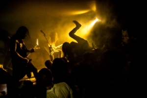“Vamos homenagear aqui quem passa a perna na galera, quem marca turnê e não paga a galera, nem paga as passagens”. A “homenagem”, “Underground is not Business”, foi dedicada a um certo produtor de Fortaleza que recentemente deixou uma banda de outro estado na mão em meio a uma turnê, sem ter ao menos como voltar para casa (não vamos mencionar o nome do rapaz aqui, pois, diante de tantos outros que só ralam para que tenhamos shows de metal na cidade, o sujeito só merece o esquecimento). O público só interrompia o mosh para acompanhar com “hey”, “hey”, “hey”. Ainda rolou “Before Death”, “Fight” e uns sons novos (“a gente tá gravando umas coisas feias aí”), enquanto moças e rapazes subiam e se jogavam do palco em direção à turba enlouquecida. Ao fim, o próprio vocalista também deu seu pulo.