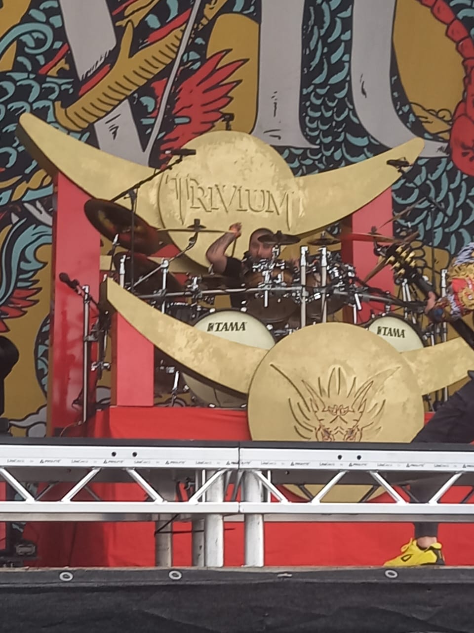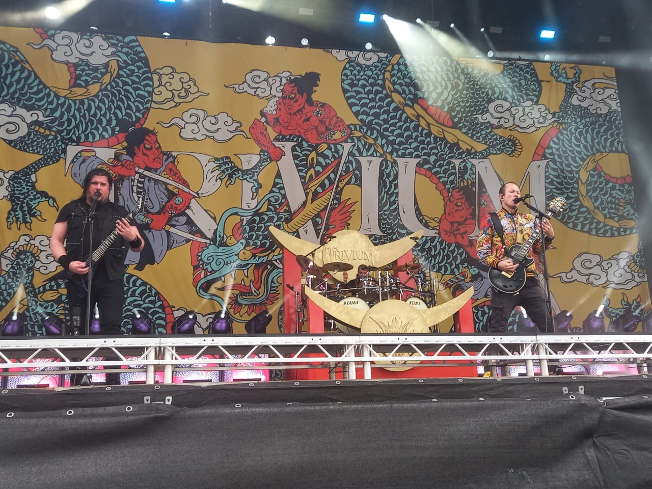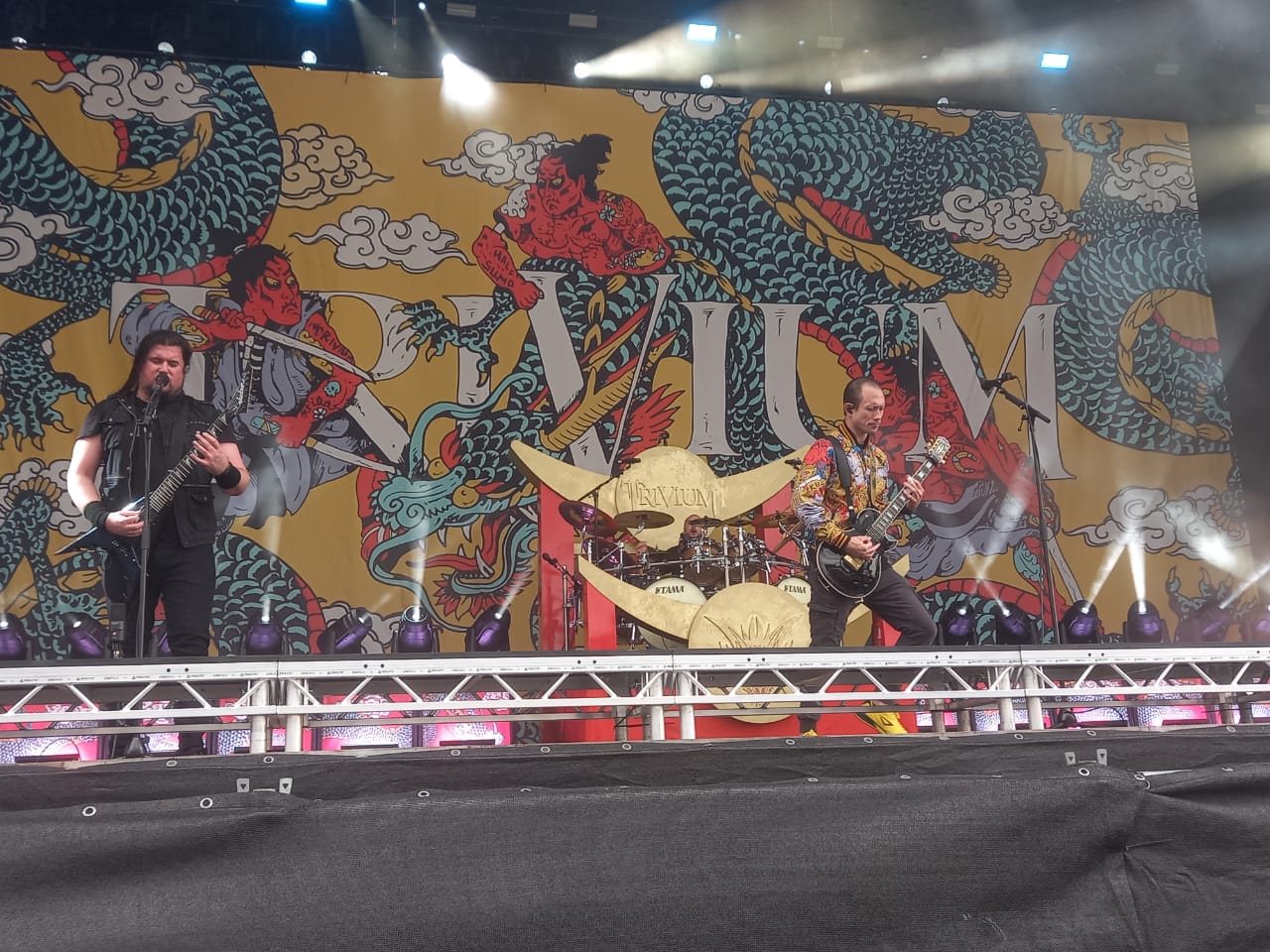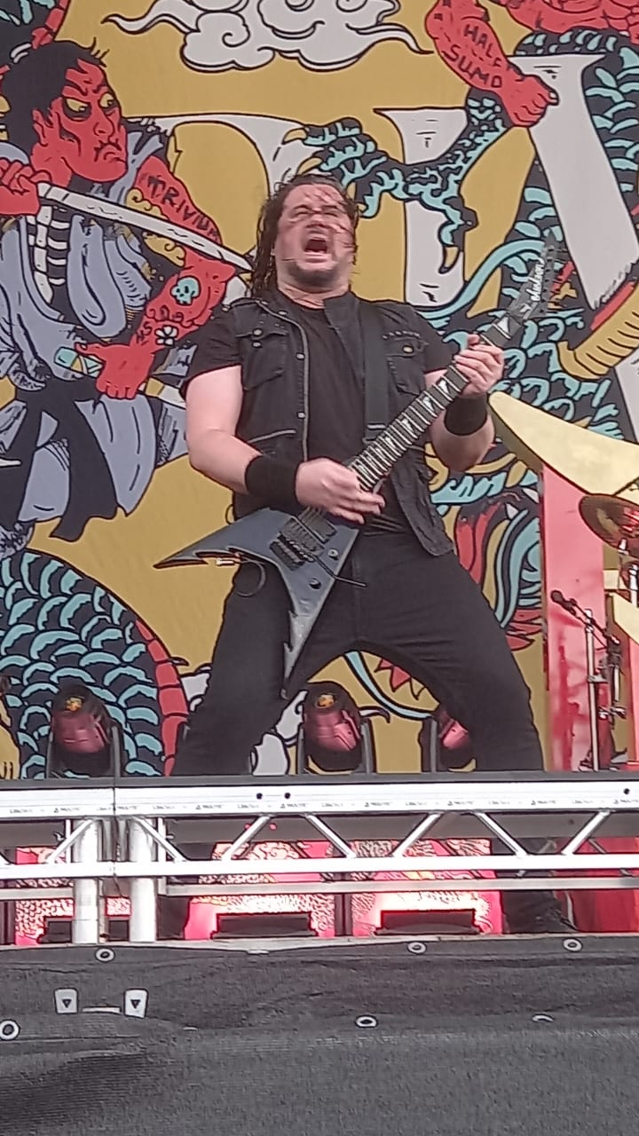 E começamos muito bem com o Trivium, que como sempre traz um set super bem, elaborado, levando os fãs a loucura! Mas infelizmente eles vieram com uma baixa, pois Paolo teve que ir a um hospital. A boa noticia é que eles levaram a música Becoming the Dragon, que não aparecia no set list desde 2018.