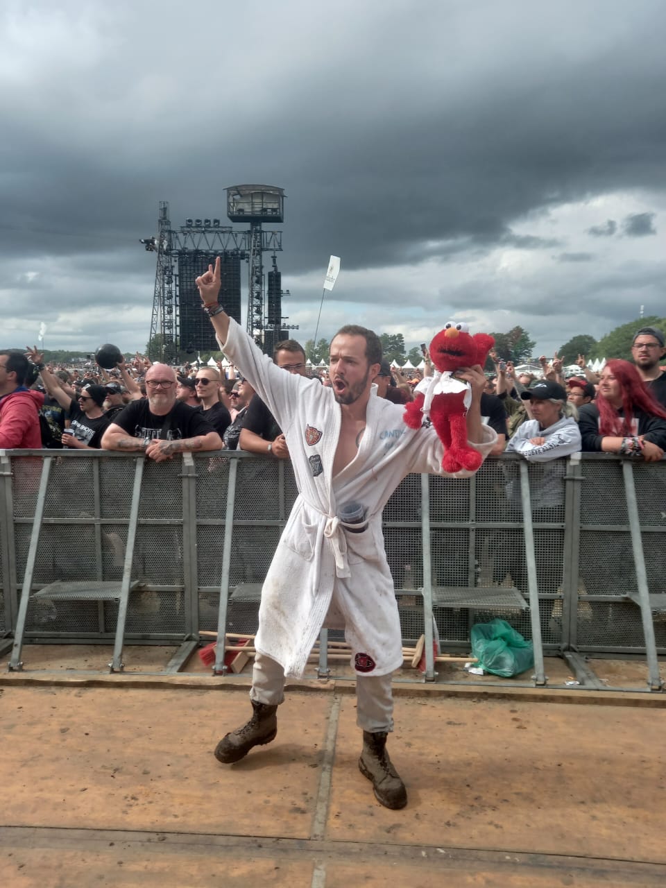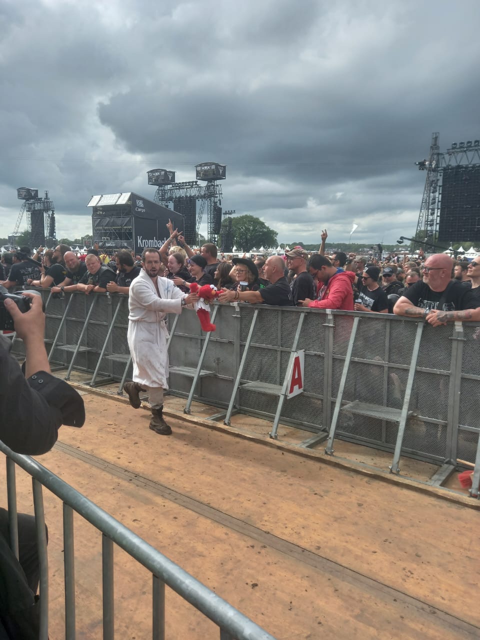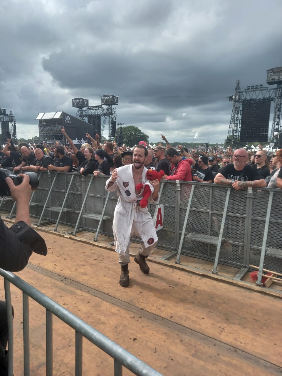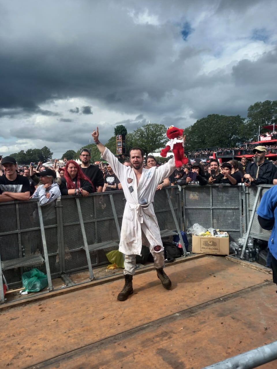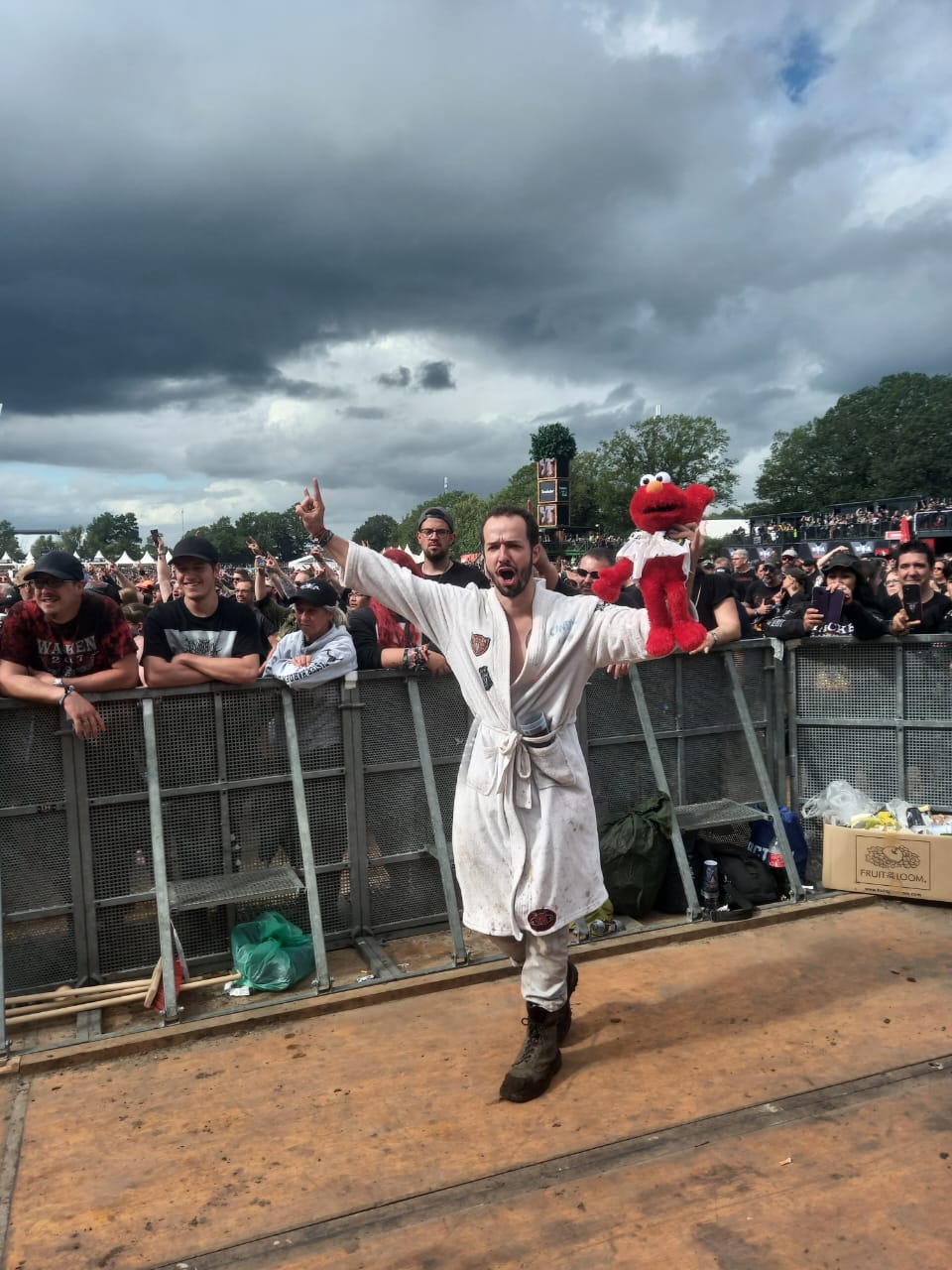 Aí vimos um estande da BOB!, a radio metal alemã, onde estávamos desde o show do Iron Maiden ganhar o mascote: um patinho preto diabinho e finalmente conseguimos. Passamos também na área vip da EMP, loja metal super conhecida na Alemanha. E também ganhamos alguns brindes.