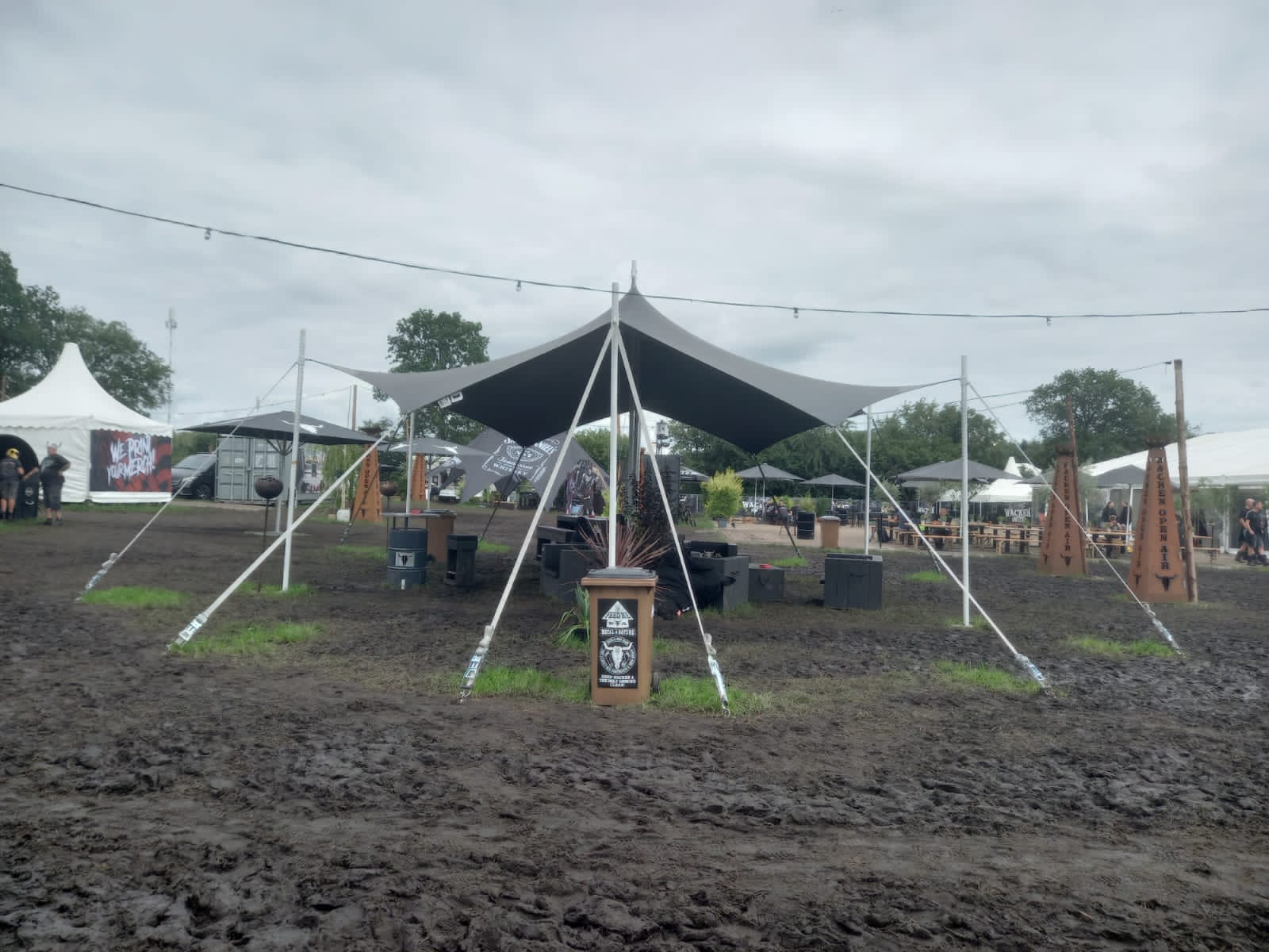 No intervalo demos uma geral pelo festival, muita lama mesmo, em alguns pontos pareciam mais lagoas ou areia movediça, mas isso não desanimava nem um pouco os presentes, inclusive vimos por diversas vezes cadeirantes ou pessoas de gesso na perna, muleta ou até mesmo os dois, se aventurando na lama e lógico sendo ajudados por desconhecidos animadíssimos, no melhor clima Wacken.