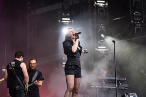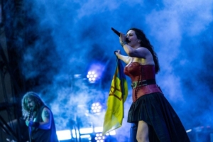 À noite, Within Temptation transformou o palco em espetáculo cinematográfico. Luzes refletiam nas gotas de chuva, a multidão cantava em uníssono, e músicas como “Mother Earth” e “Stand My Ground” criavam uma atmosfera mágica. Entre uma música e outra, sentíamos o frio na pele, mas a energia coletiva nos mantinha aquecidas.