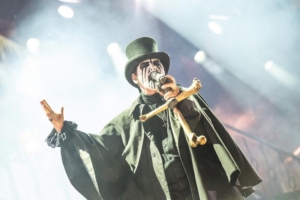 O encerramento do Louder Stage ficou nas mãos do lendário King Diamond, que trouxe ao Wacken não apenas um show, mas um verdadeiro espetáculo teatral de horror e heavy metal. O palco foi transformado em um cenário sombrio, com candelabros, vitrais góticos, cruzes invertidas e a tradicional boneca demoníaca do cantor. Assim que as cortinas se abriram, a plateia foi tomada pelo grito agudo inconfundível do vocalista, provando que, mesmo após tantos anos, sua voz segue intacta e cortante. Empunhando o microfone em forma de cruz invertida feita de ossos, King conduziu a multidão como um mestre de cerimônias do oculto.