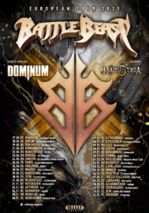Se você gosta de shows ao vivo intensos e altamente energéticos com musicalidade e composição perfeitas, vocais poderosos, um cenário espetacular, fogo, força e diversão, os astros do metal finlandês BATTLE BEAST são a escolha perfeita para você. Gravada e filmada no Helsinki Ice Hall com ingressos esgotados em janeiro de 2023, esta versão ao vivo de ‘Wings Of Light‘ é estelar e aguça o apetite para mais shows e o lançamento do primeiro álbum ao vivo, previsto para 11 de abril. O novo álbum ao vivo, Circus Of Doom – Live In Helsinki 2023, filmado e gravado no Helsinki Ice Hall diante de 3.000 fãs extasiados, será lançado em 11 de abril pela Nuclear Blast Records. A turnê europeia do BATTLE BEAST começa com tudo em 17 de outubro, com o maior show da banda como atração principal na Alemanha até hoje, na Inselpark Arena de Hamburgo. A turnê manterá a banda na estrada até meados de dezembro. Para completar o evento com superioridade no metal melódico, DOMINUM se juntará à turnê como convidado especial, e a ascendente força do power metal sueco MAJESTICA será o ato de abertura. Todas as datas da turnê estão listadas abaixo.